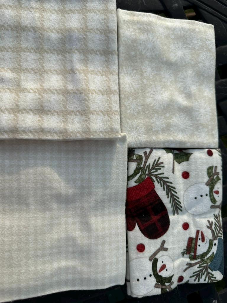 This charming fat quarter bundle is made from 100% cotton flannel, offering a soft and cozy texture perfect for holiday crafting. The design features a delightful mix of festive patterns including snowmen, holly leaves, and winter scenes, all wrapped in a visually appealing package that suggests a thoughtful gift presentation. Ideal for quilters, sewers, and crafters looking to add a touch of holiday cheer to their projects.
