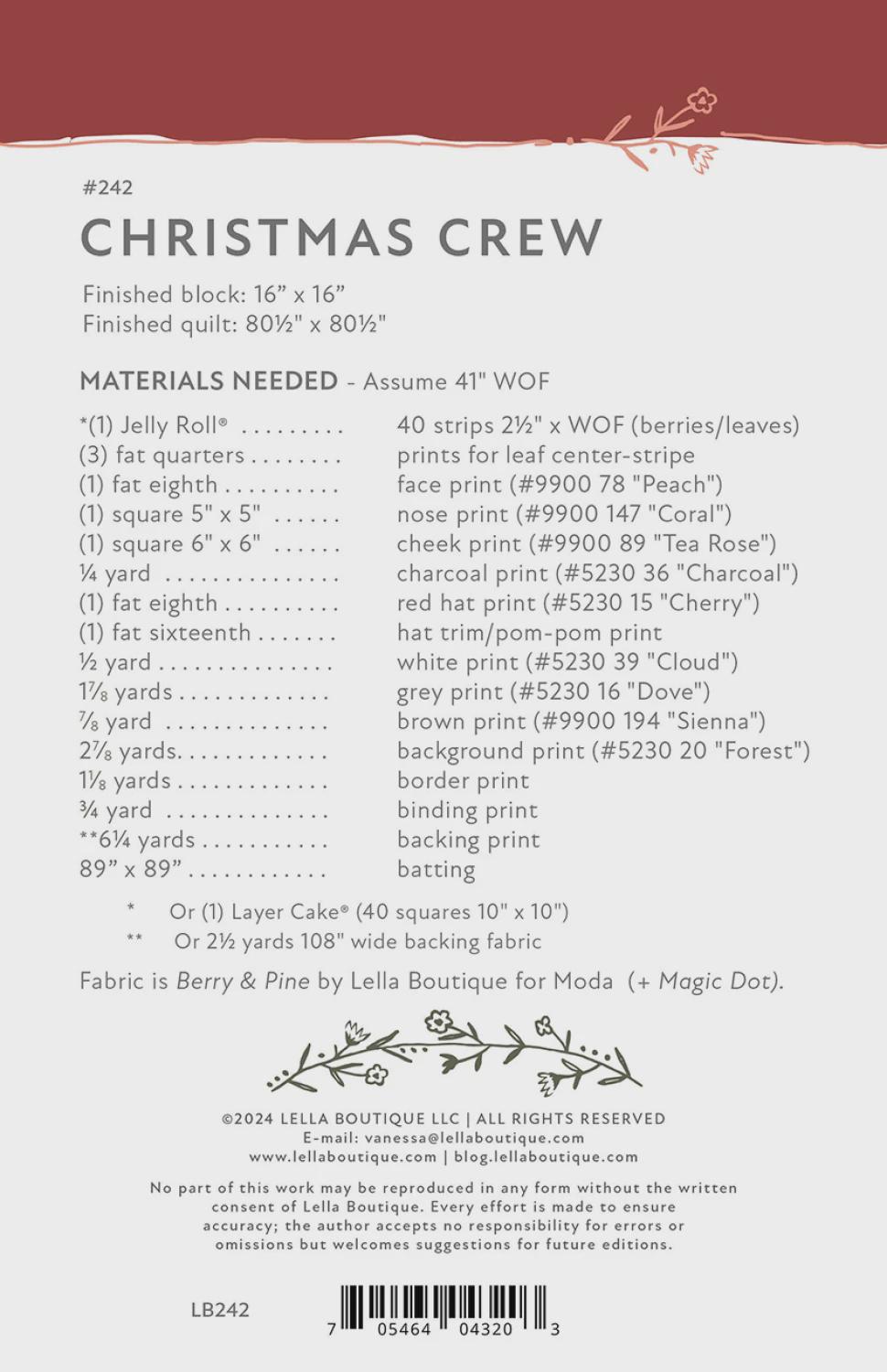 Christmas Crew - Quilt Pattern -From Lella Boutique- Pick your favorate Pre Cuts