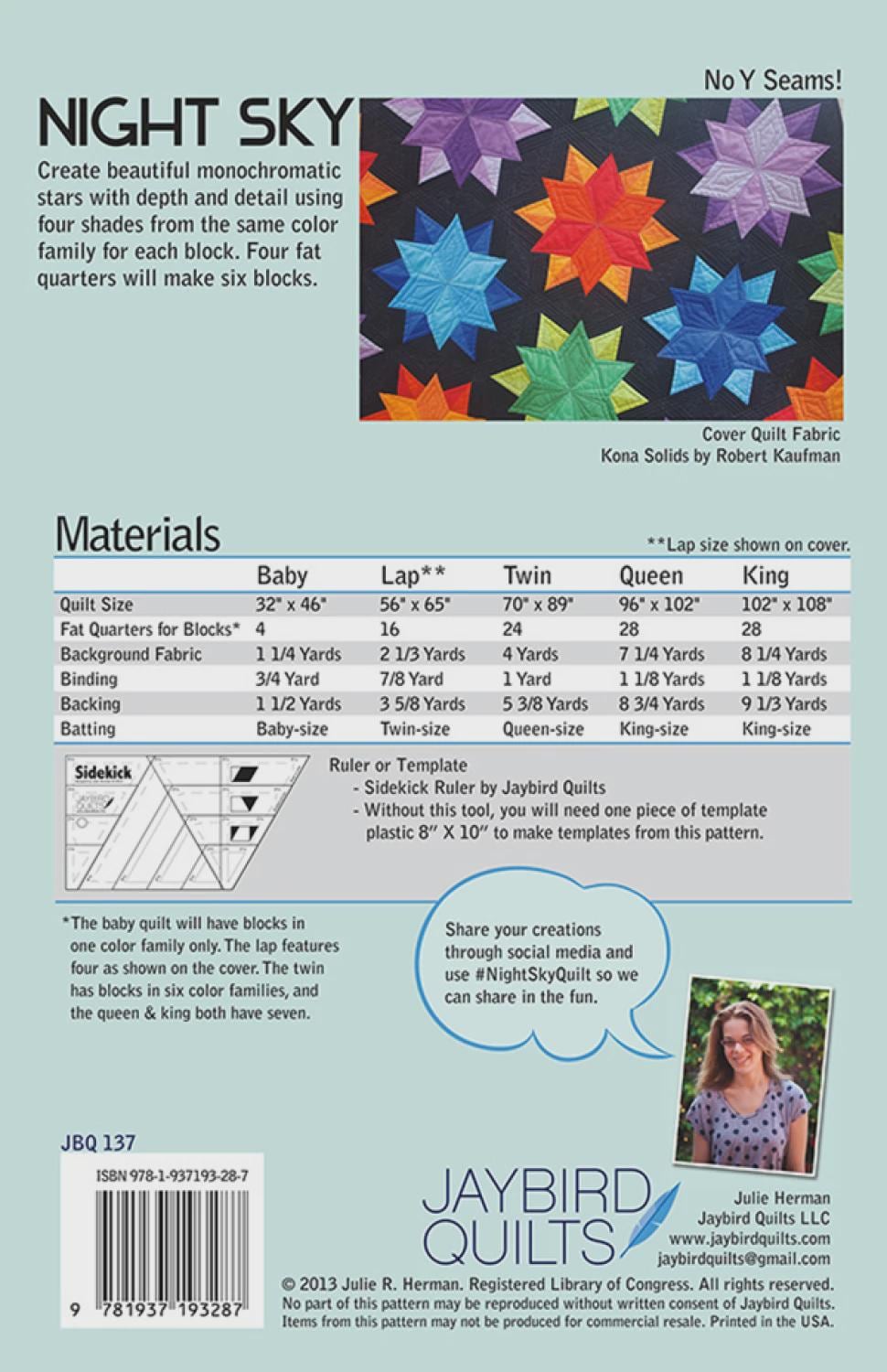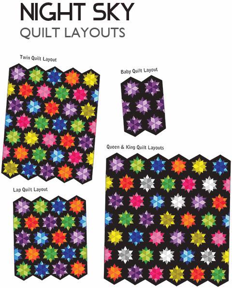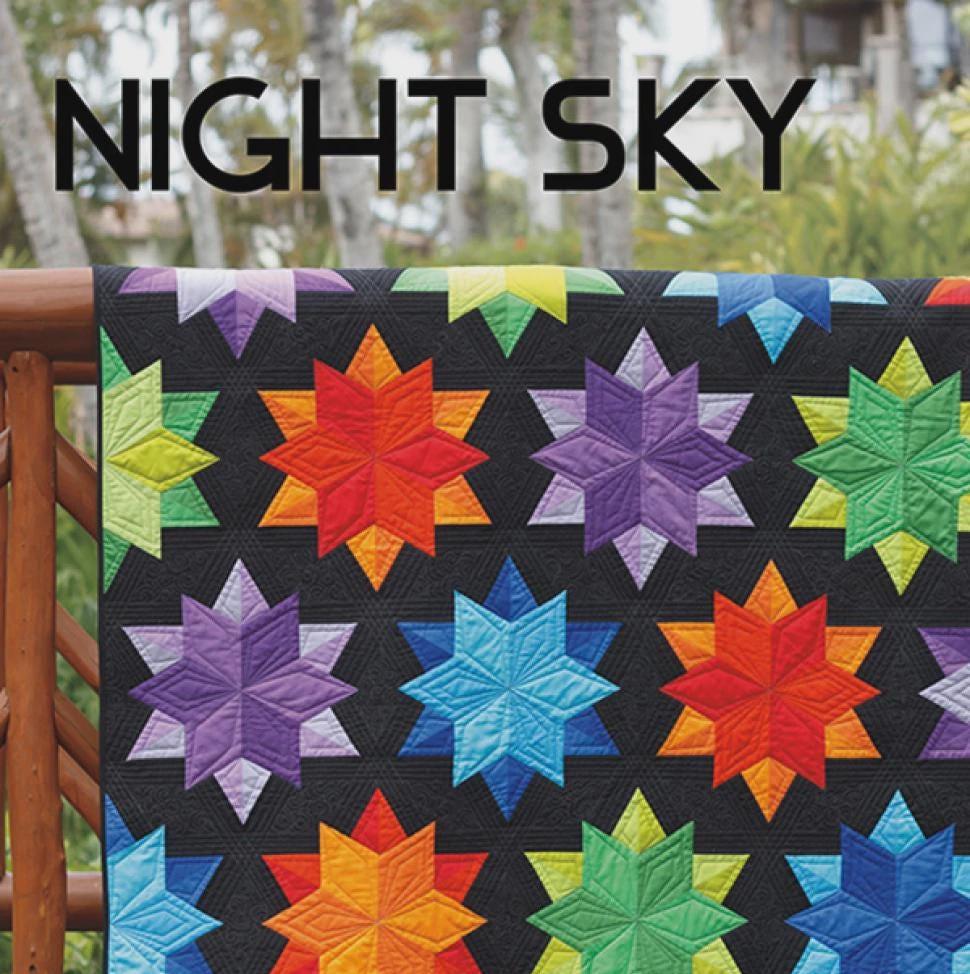 Transform your sleeping space into a celestial wonder with this vibrant Night Sky Quilt. This quilt features a stunning array of star patterns in bold, radiant colors like red, purple, blue, yellow, and green, all set against a deep black background. Available in multiple sizes, from Baby (32in x 46in) to King (102in x 108in), it's perfect for adding a touch of whimsy and color to any bedroom or nursery. The quilt's design is not only visually striking but also crafted with precision, ensuring comfort and durability for all ages.
