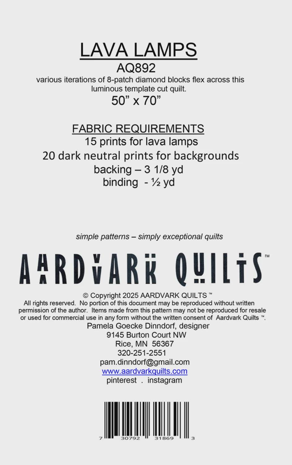 Lava Lamps - AQ892 50" x 70" Various iterations of 8-patch diamond blocks flex across this luminous template-cut quilt