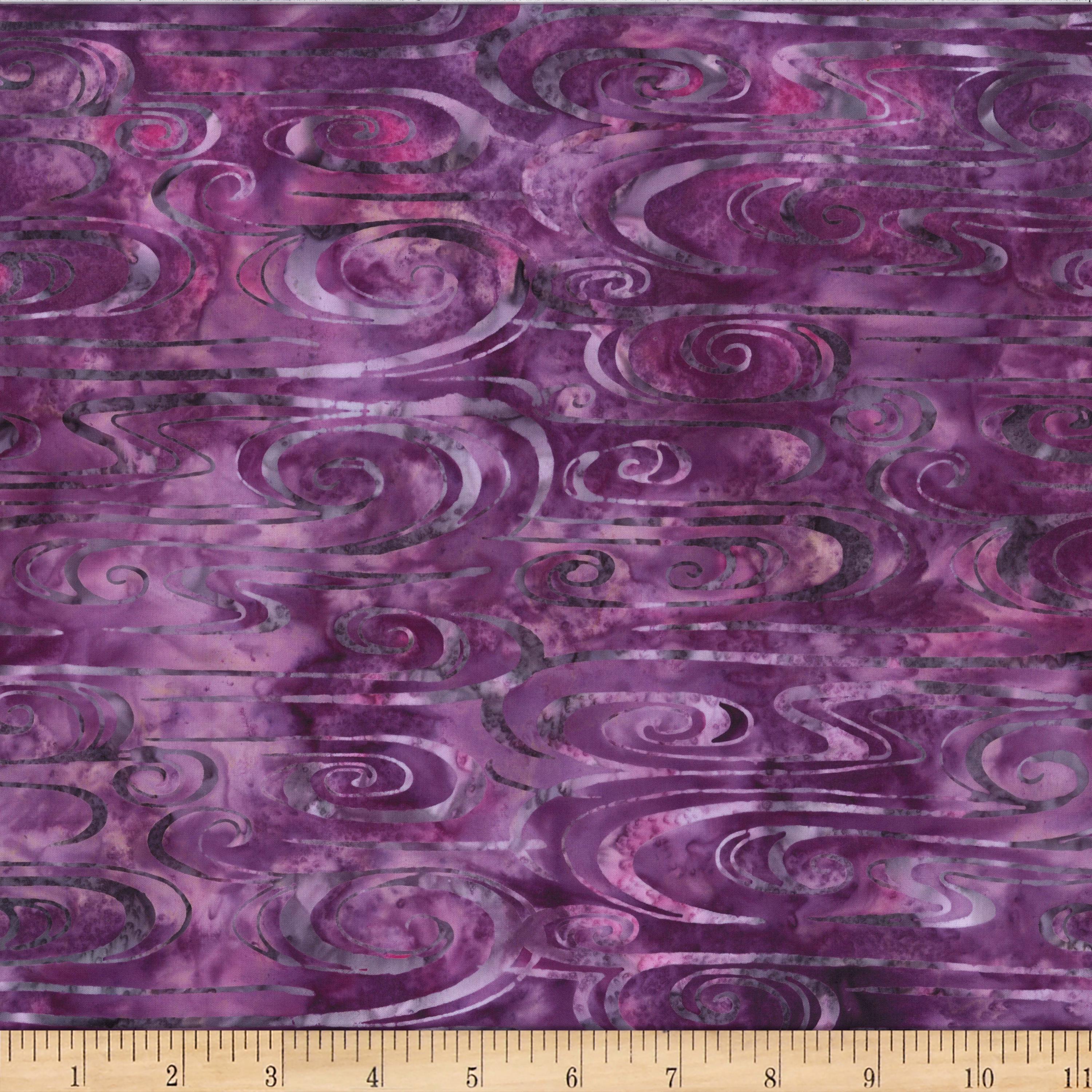 Plum Batik Fabric: Hoffman Summer Zen Cotton, Pink & Purple Swirls - By the Half Yard
