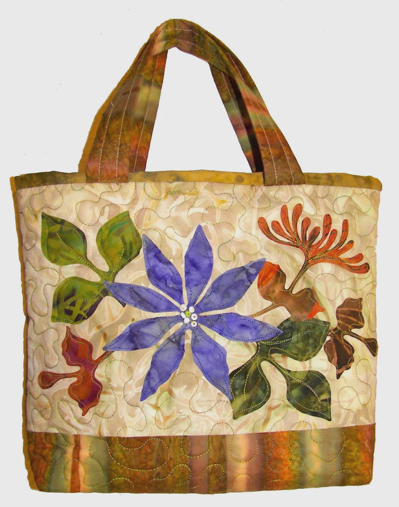 Clematis - Raw Edge applique Purse Pattern - By Laundry Basket Quilts