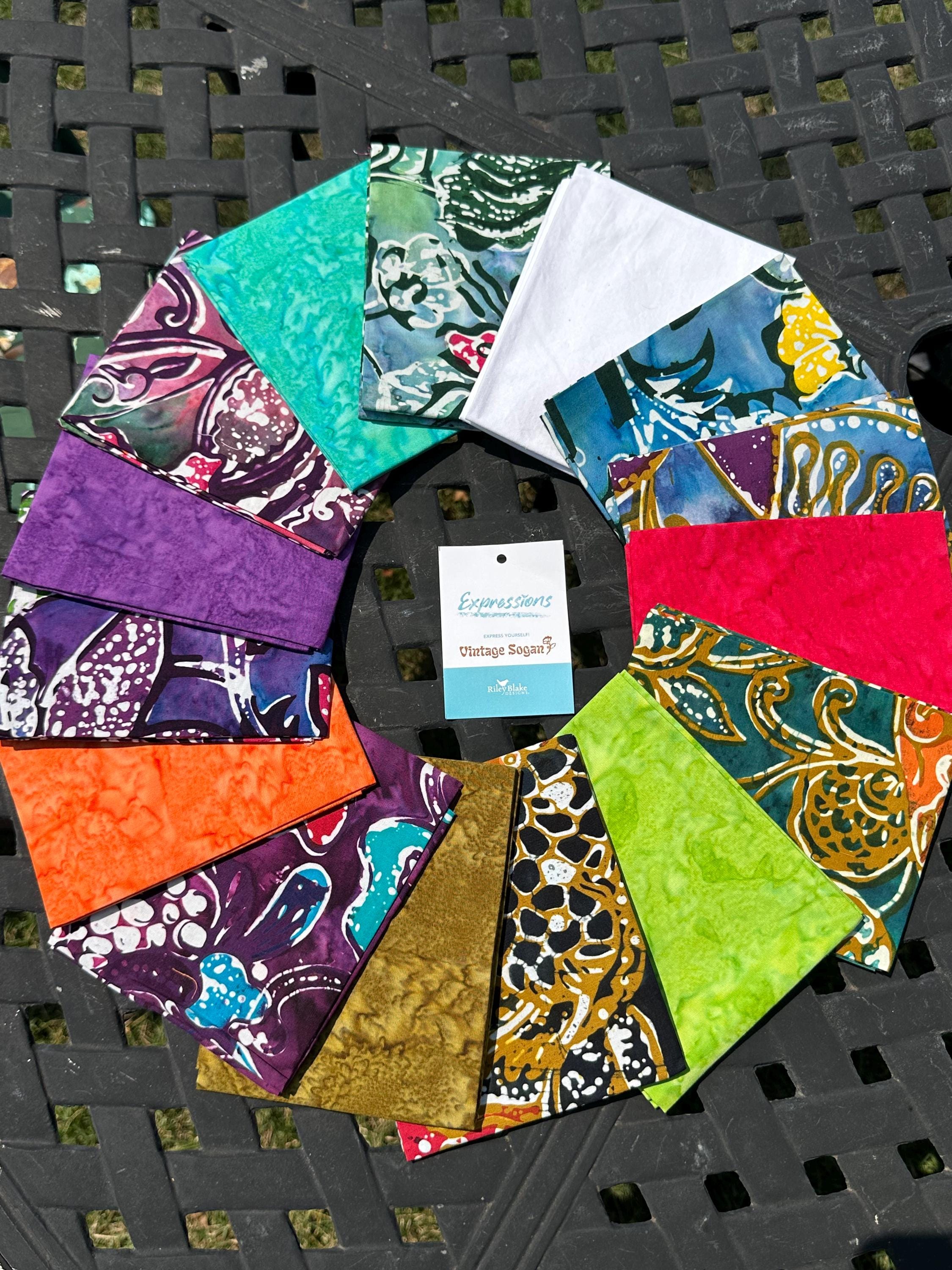 Vintage Sogan Batik Fat Quarter Bundle: 100% Cotton, 15 Piece Riley Blake 'Express Yourself!'