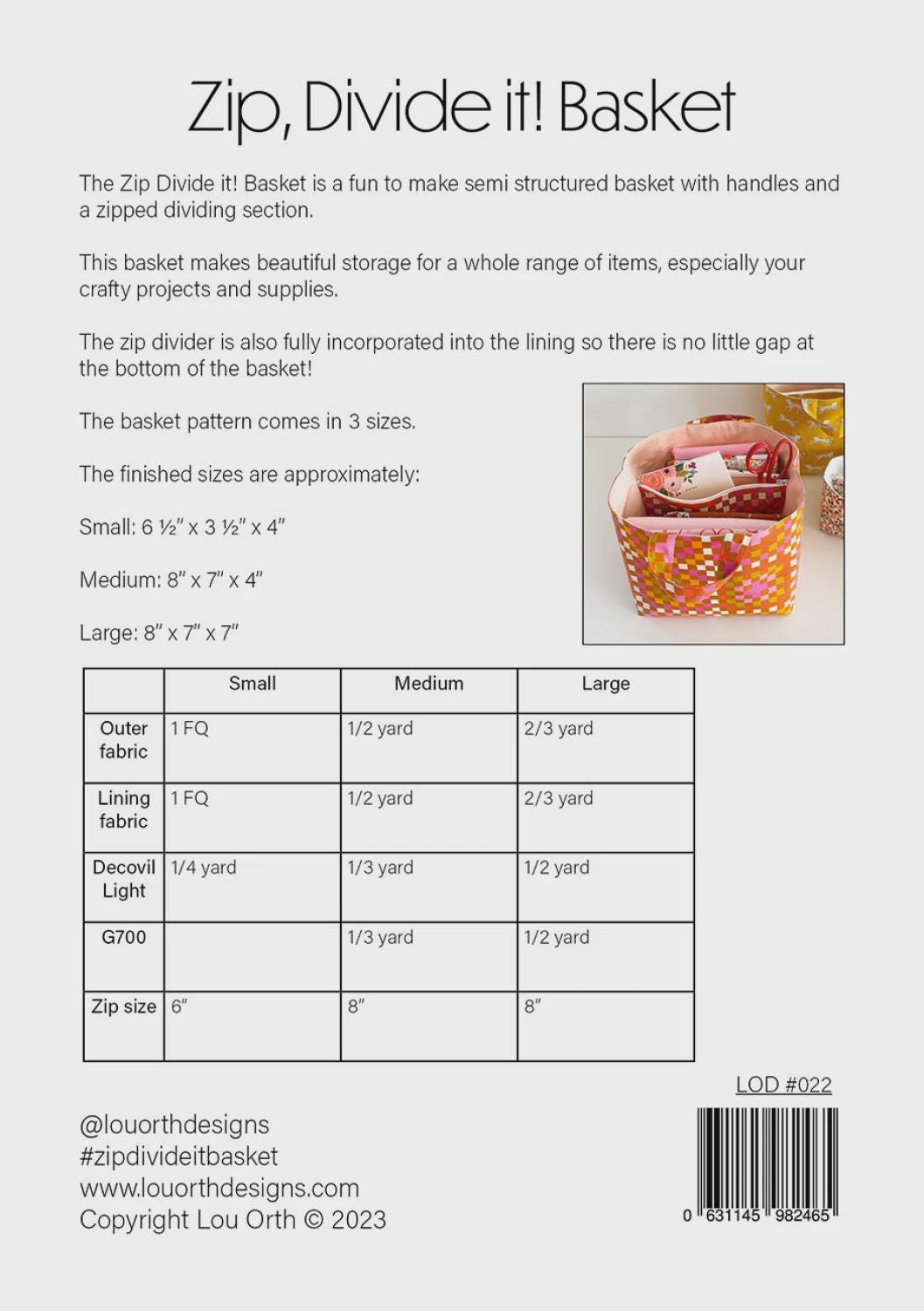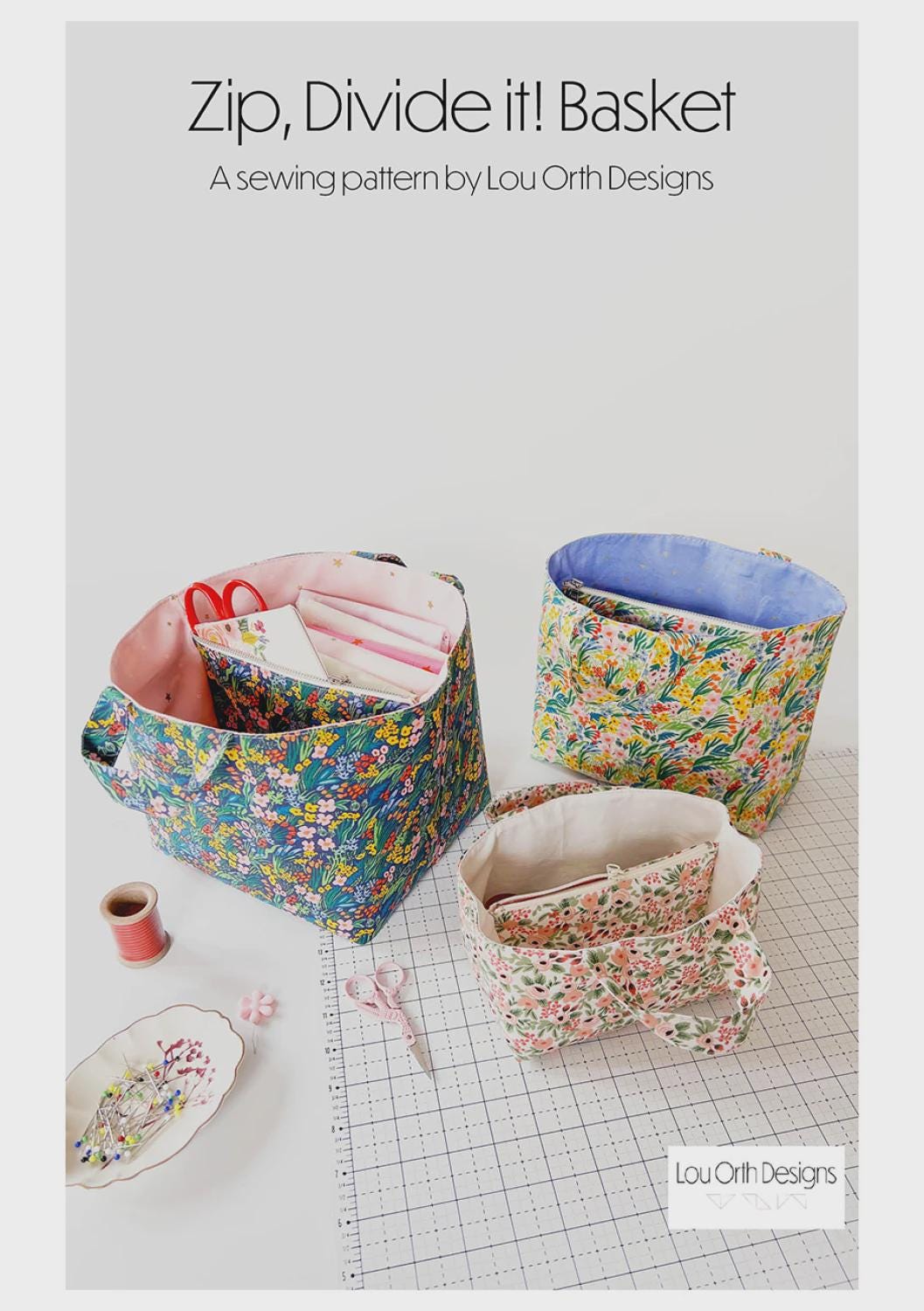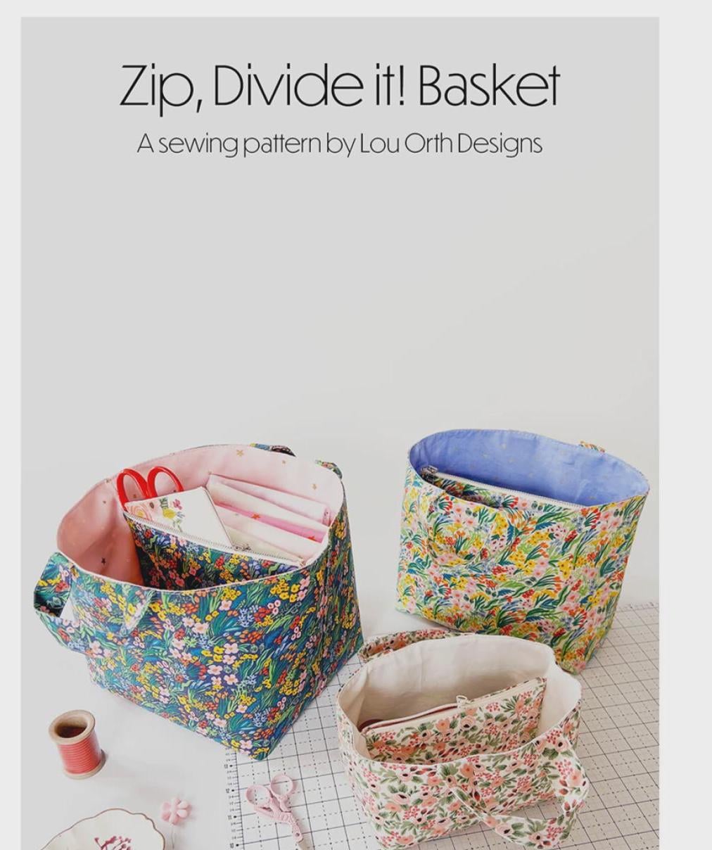 The Zip Divide it basket is a fun to make medium structured basket with handles and a zippered divided section.