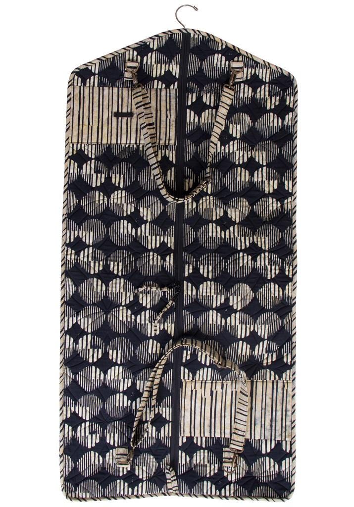The sturdy quilted bag features a full front double-slide zipper opening and has a top opening for hanger extension. A handy loop secures hangers and enables the bag to be hung on a hanger or hook.