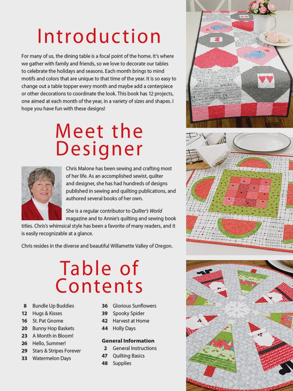 Create unique accents for your table with these creative table toppers. Each of these 12 designs reflects something special for each month—from hearts in February to birds and flowers in May to Santa and trees in December. There's a little bit of whimsy for every month of the year.