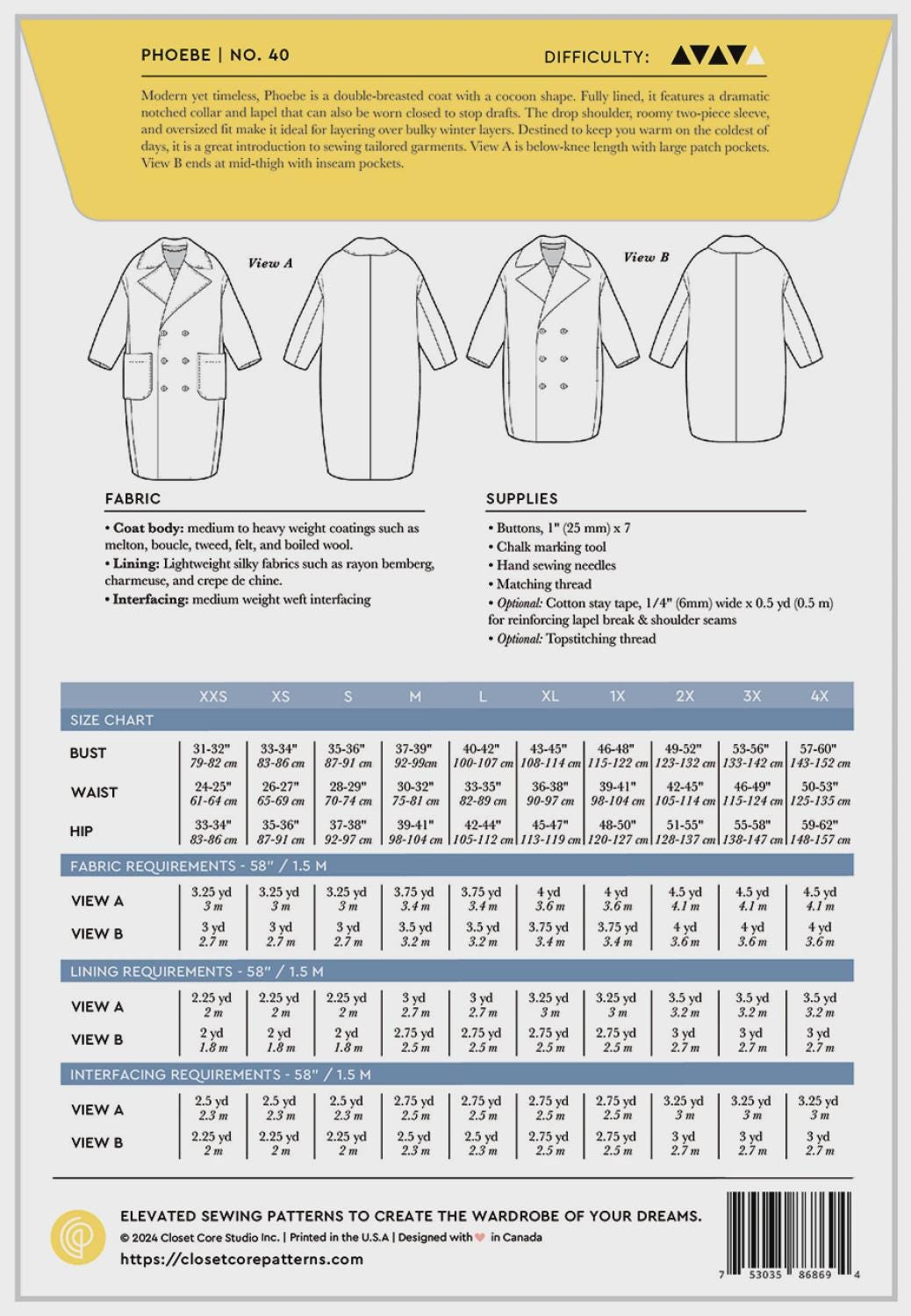 Phoebe Coat - Sewing Pattern in sizes XXS to 4X - From Closet Core Patterns