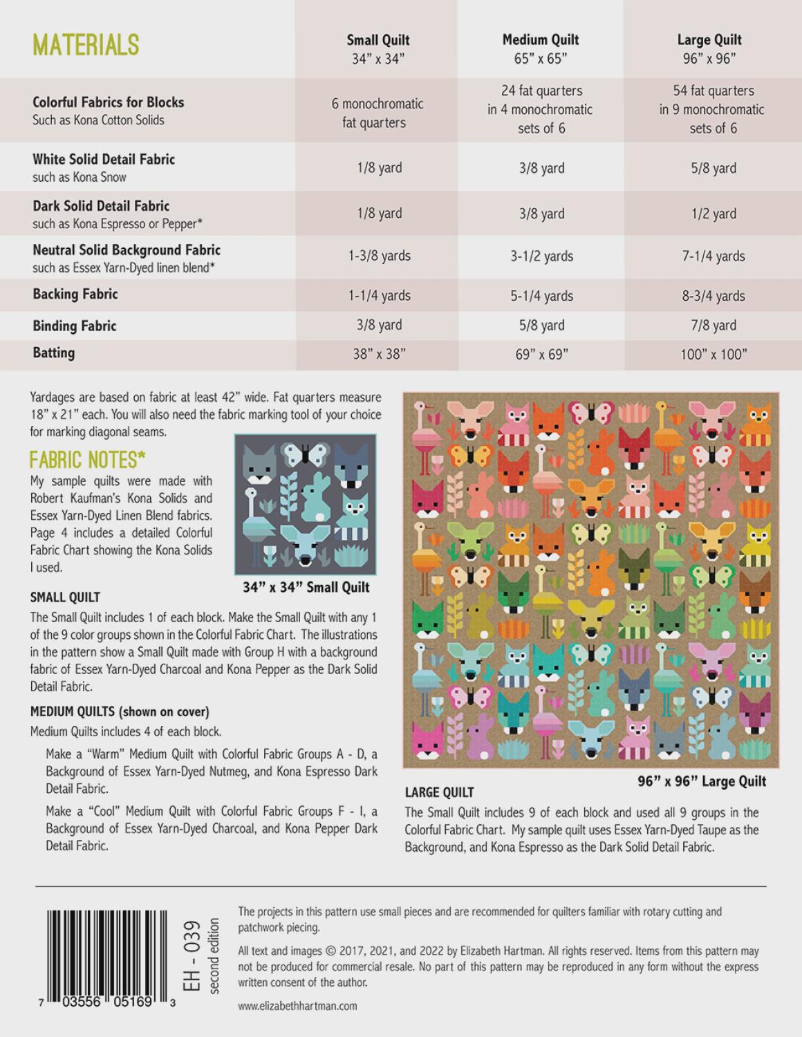 Delightful Desert is a fat quarter friendly animal sampler quilt made using conventional patchwork piecing techniques. This pattern is similar in format to my Fancy Forest and Awesome Ocean sampler quilts and includes nine new plant and animal blocks that can be used to make three quilt sizes. Sample quilts feature my Terrarium Fabric Collection for Robert Kaufman Fabrics.