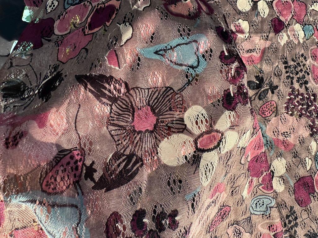 Eyelet polyester fabric is a lightweight and breathable fabric characterized by decorative grommets or holes woven into its structure. It is often made from polyester and can be knitted or woven, making it versatile for various applications.