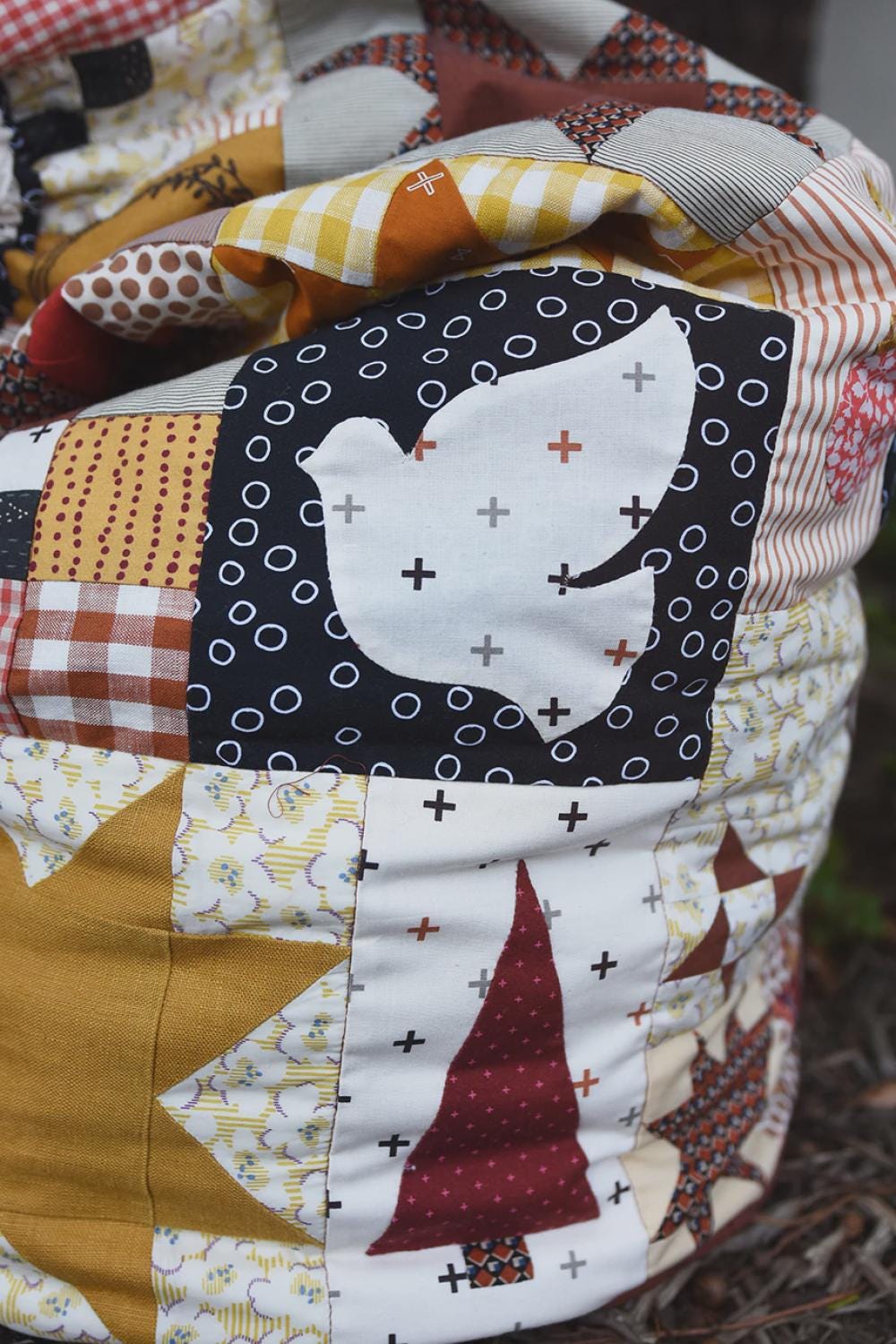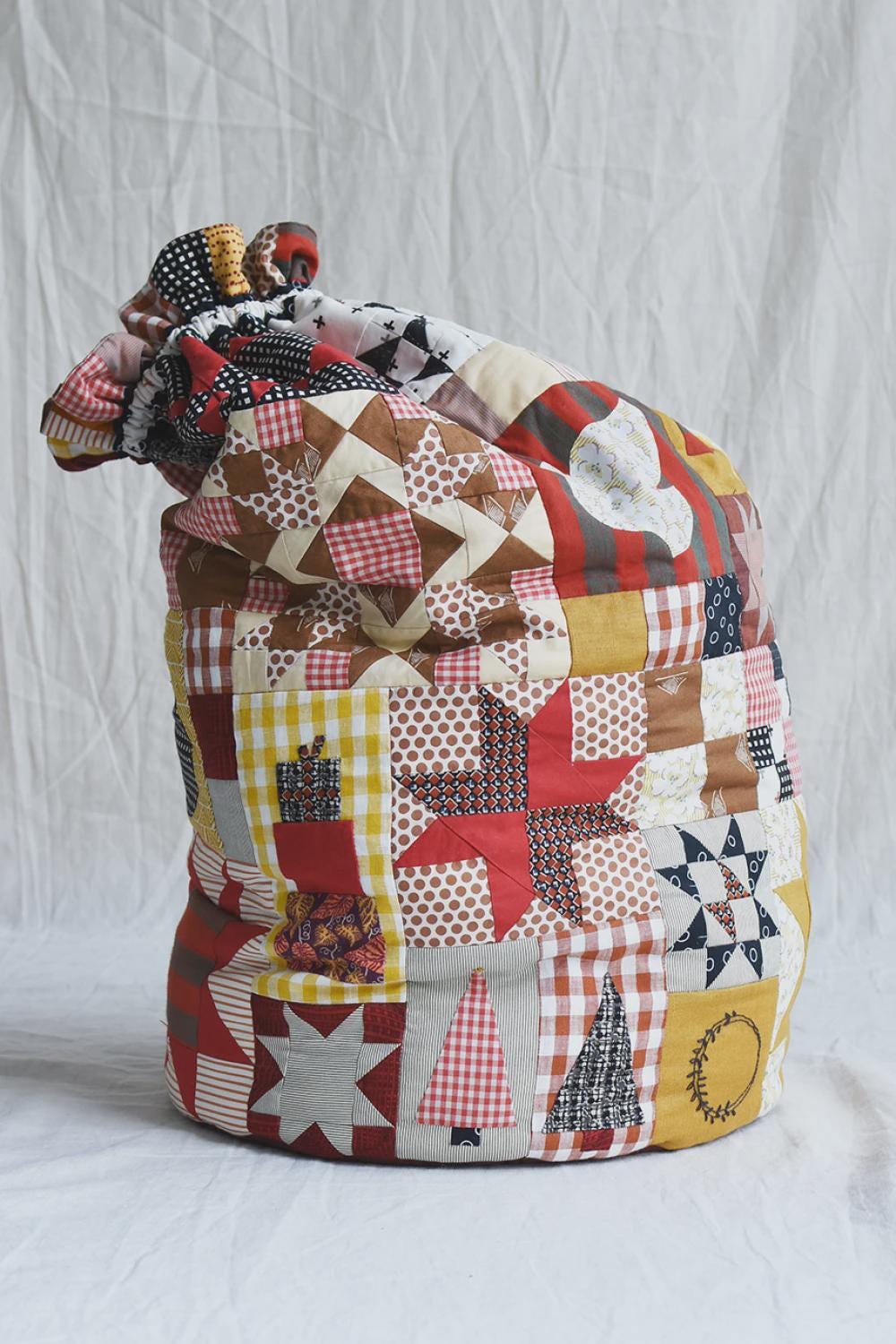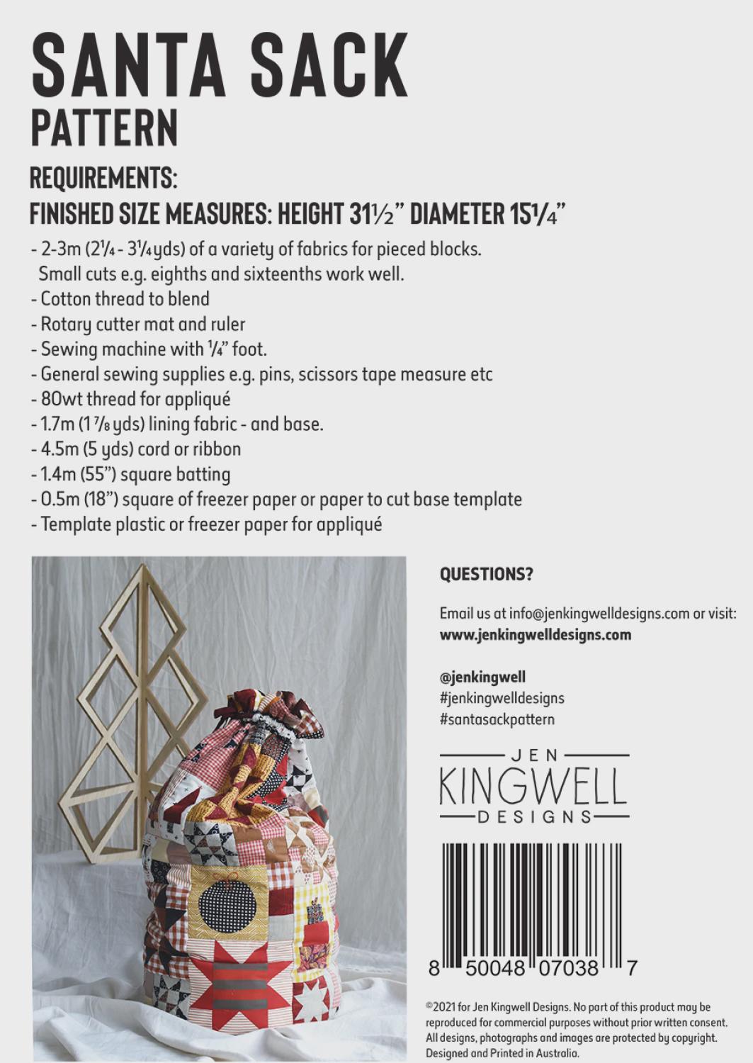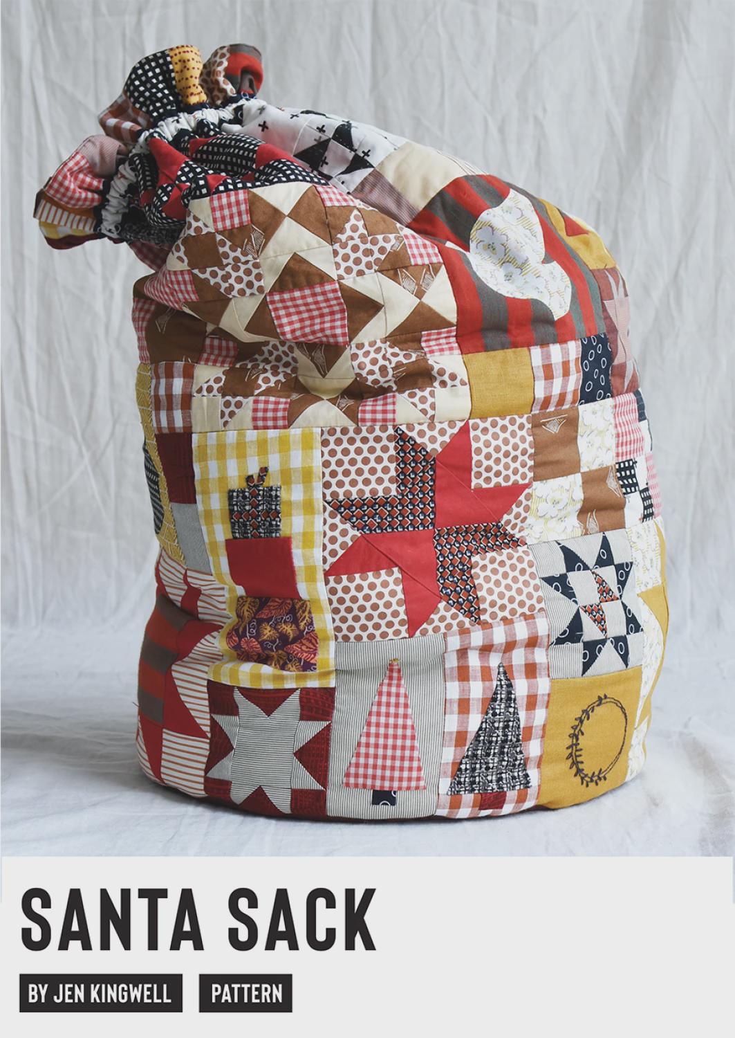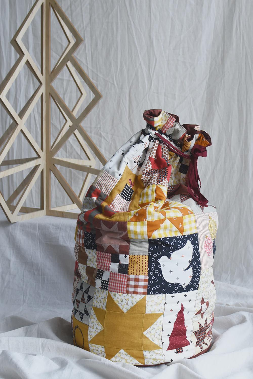 Delight in crafting your very own Santa Sack, a charming project perfect for filling with presents. This pattern by Jen Kingwell combines the joy of piecing and appliqué, allowing you to customize your sack with your favorite blocks in any color palette you desire. The sack features a mix of star and tree motifs in vibrant reds, browns, and yellows, with a diameter of 15.25 inches and a height of 31.5 inches. Ideal for beginners to intermediate quilters, this pattern offers flexibility in size and design, making it a unique addition to your holiday