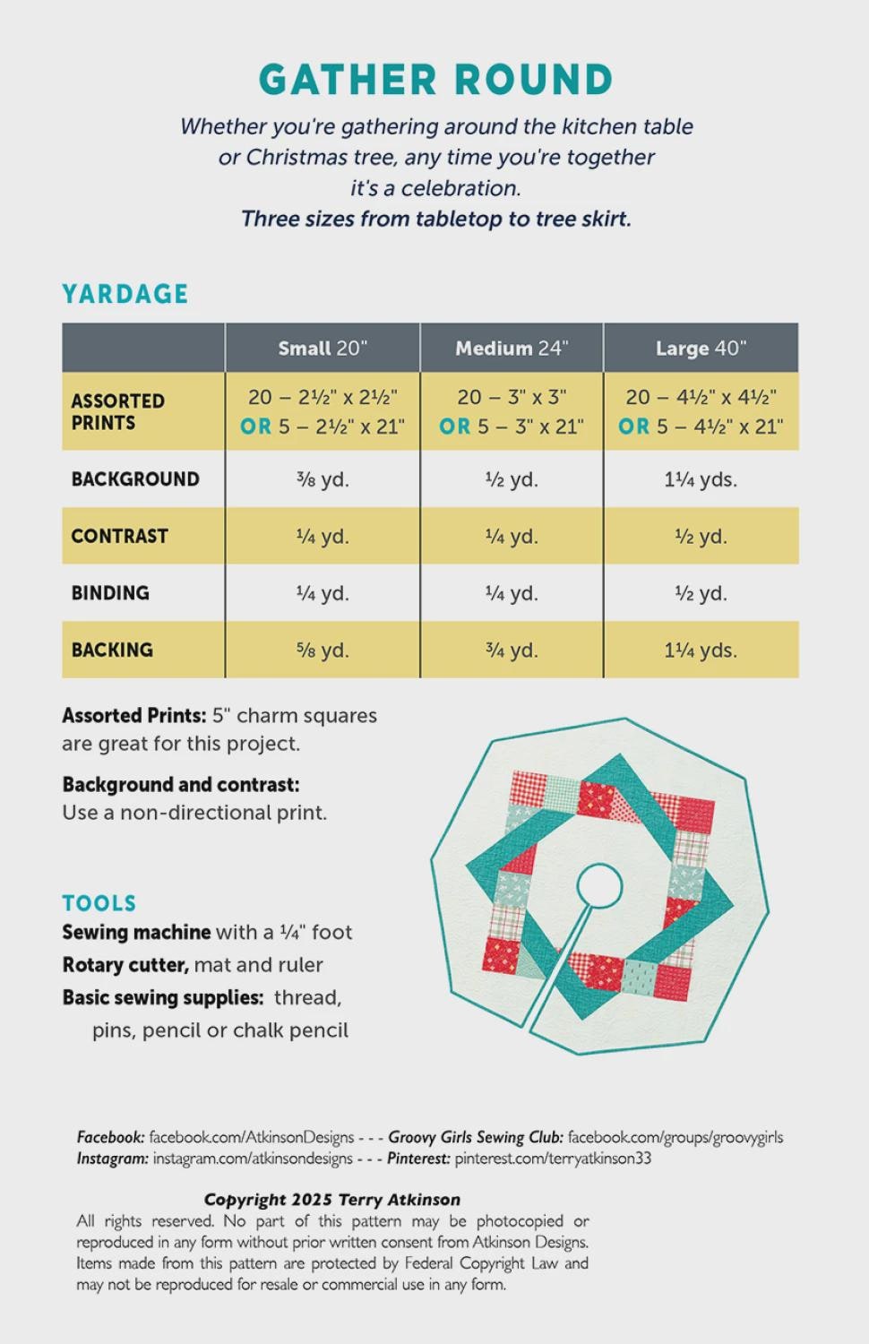 Gather Round- Table Topper or Tree Skirt - Quilting Pattern-Fron Atkinson Designs