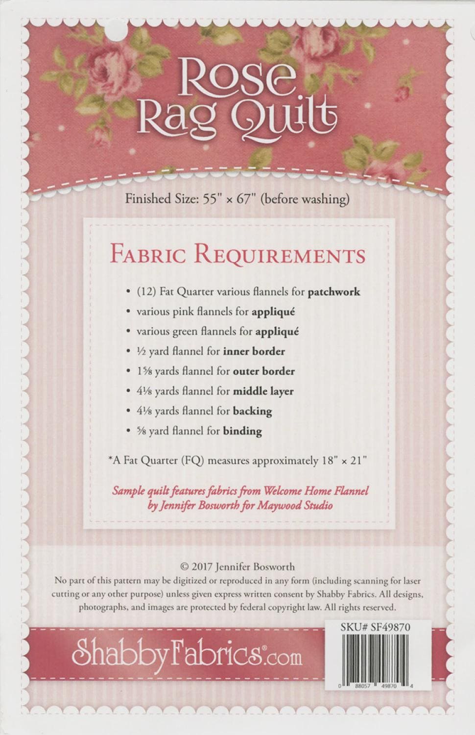 The Flannel Rose Rag Quilt is a darling Shabby Fabrics original design.