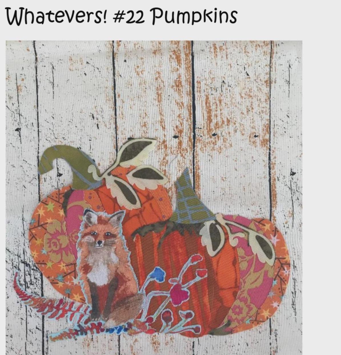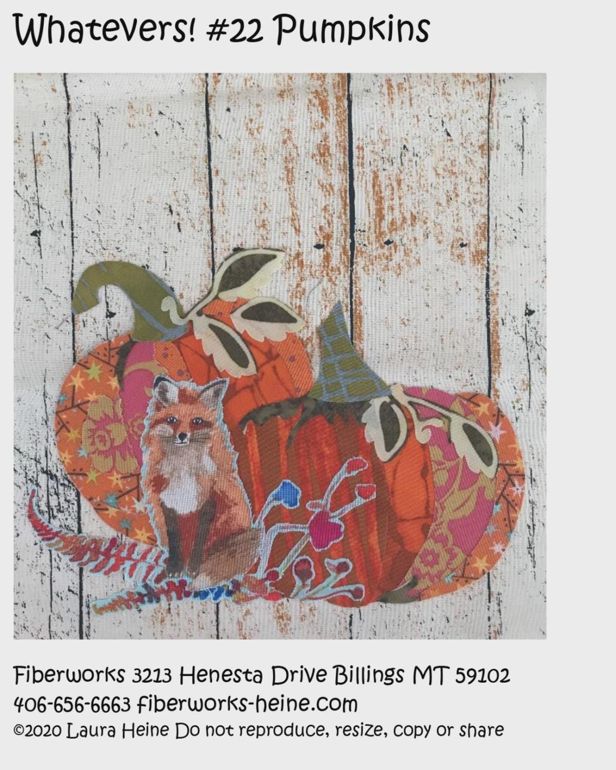 Whatevers! #22 Pumpkins Collage Pattern by Laura Heine Whatevers are 8” collage blocks that you can turn into runners, potholders, tiny quilts or continue making the designs for a large collage quilt! Includes pattern with complete color photo and instructions
