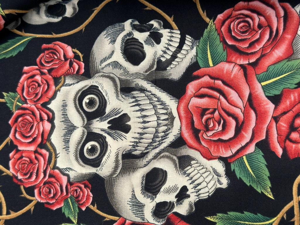 The Rose Tatto (Skulls & Roses) By The Alexander Henery Fabrics Group