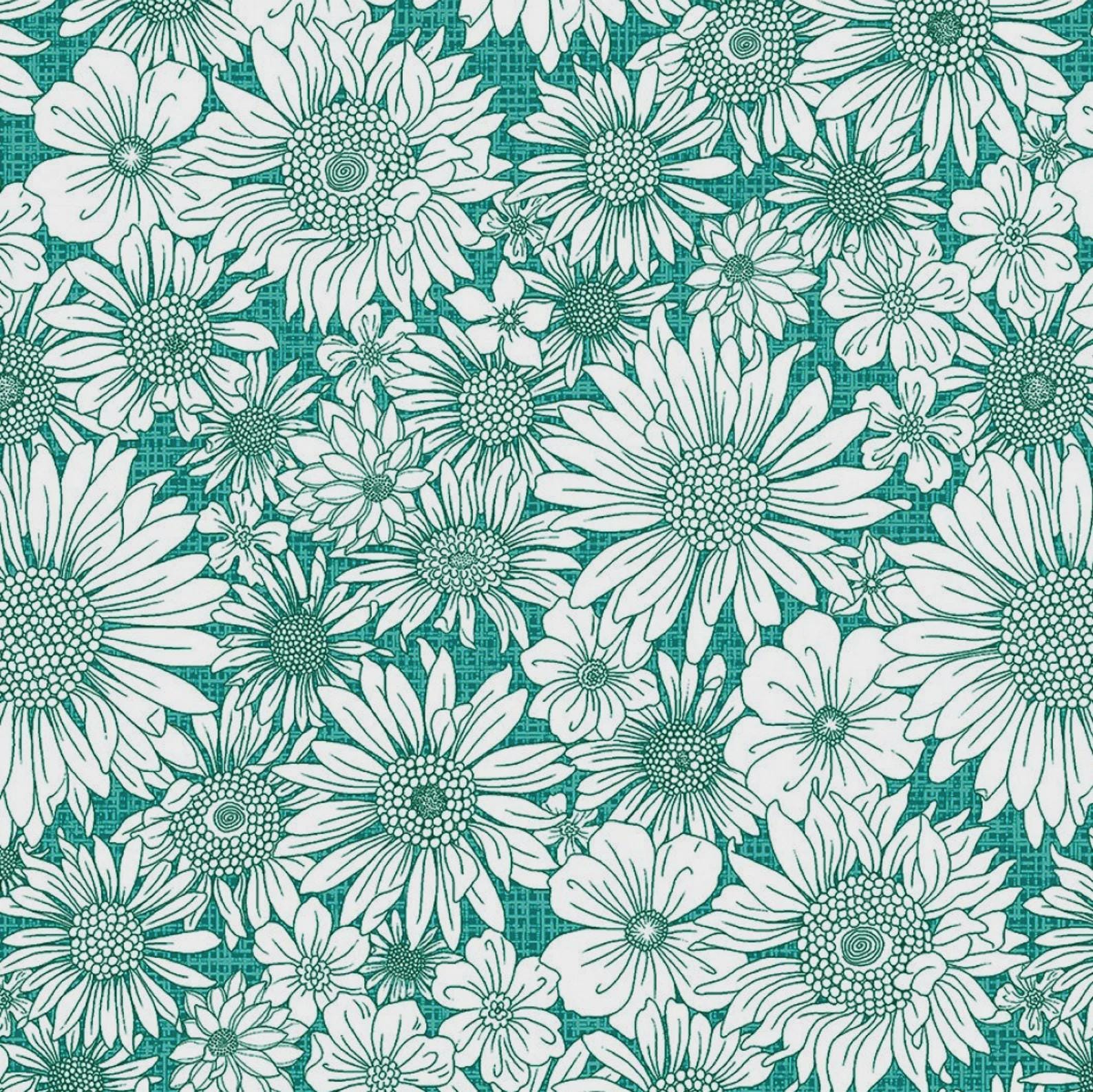 Porch Swing Upsy Daisy Turquoise - By Pat Sloan for Benartex 13676B-82 By the Half Yard