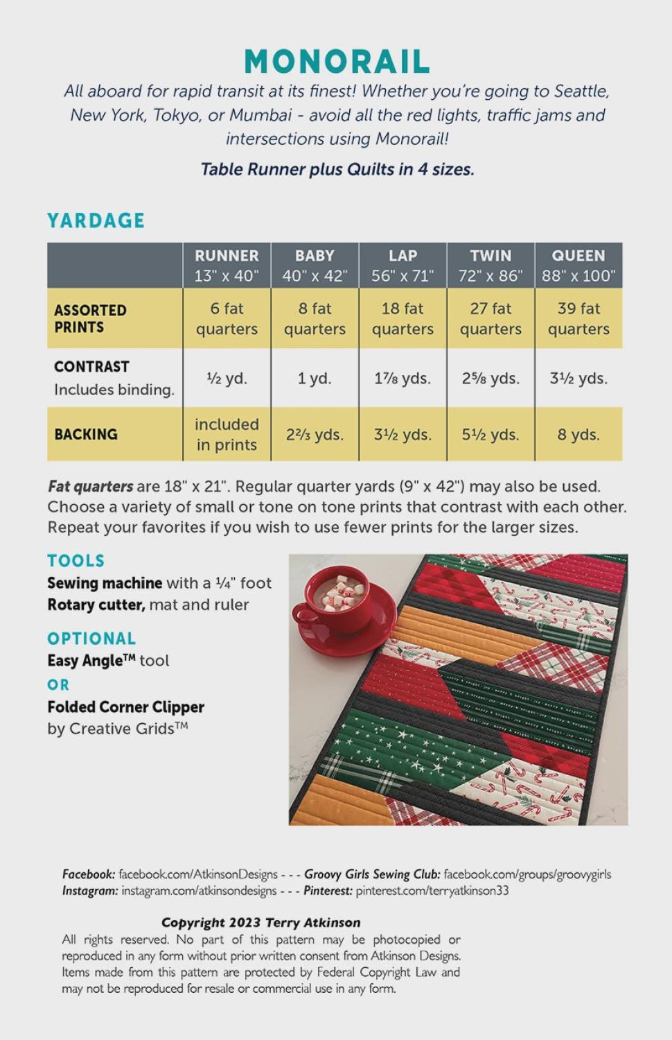 Monorail Runner/Quilt in 4 sizes - Pattern - By Atkinson Designs (Paper Pattern)