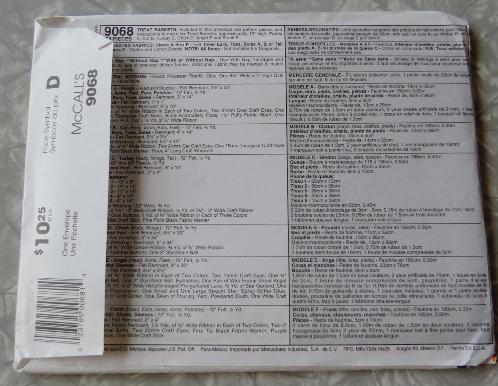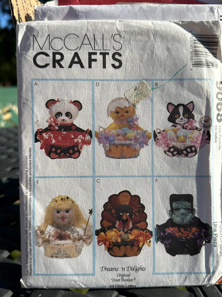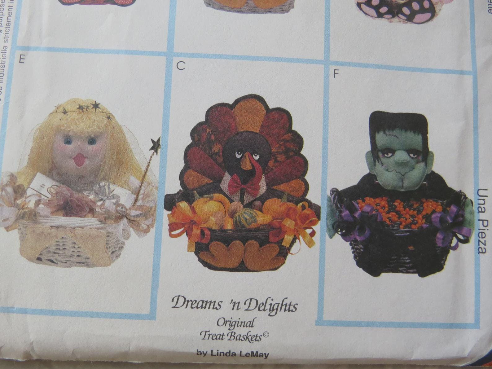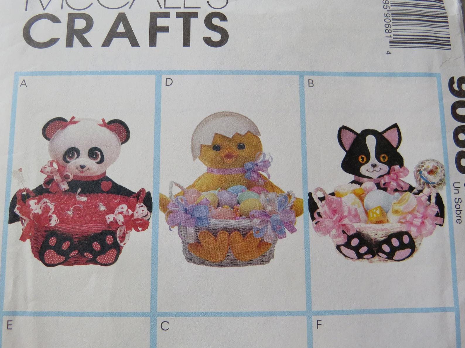 McCalls Crafts 9068 Treat Baskets: Panda, Cat & Turkey Chick Angel + Frankenstein Holiday Easter Halloween Xmas FF UNCUT 1997 Sewing Pattern