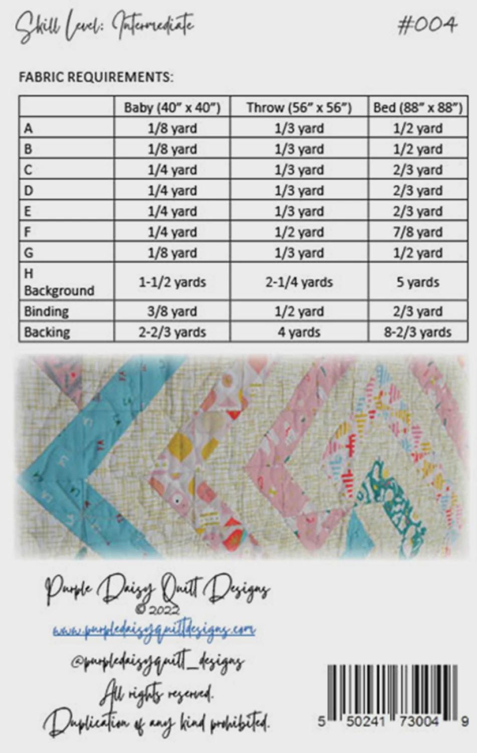 The Sprite Quilt by Jody Leonardo of Purple Daisy Quilt Designs is made up of all Half Square Triangles (HST) and the magic happens with color and design. Pattern includes instructions for Baby (40" x 40"), Throw (56" x 56"), and Bed (88" x 88") sizes.