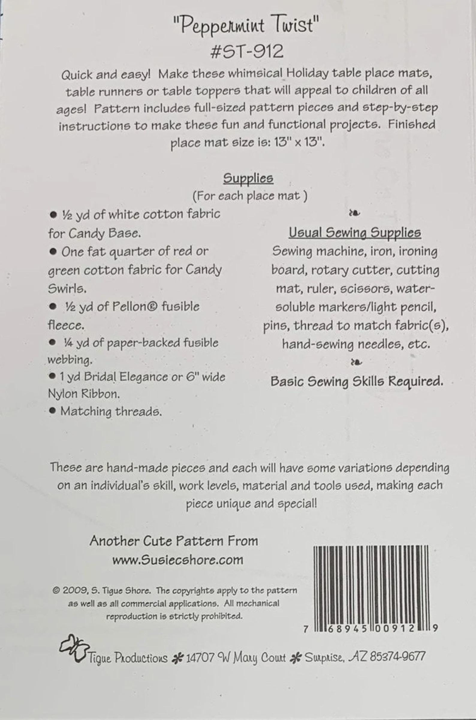 Peppermint Twist- Table Runner- Sewing Pattern - From Susie C. Shore Designs