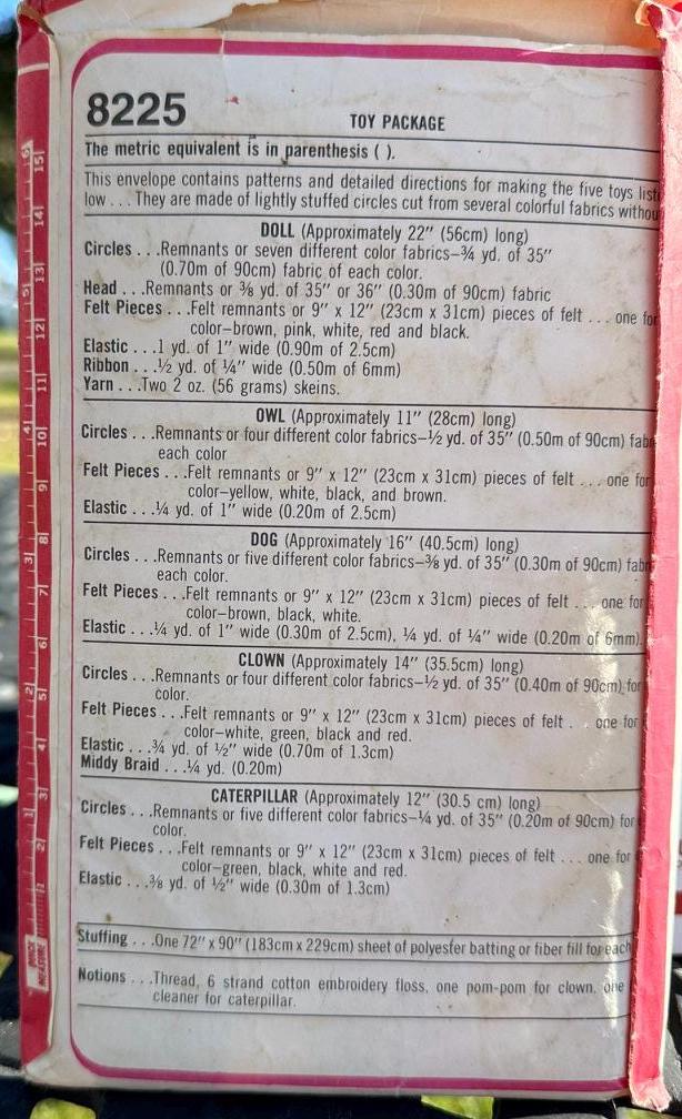 Simplicity - Vintage 1977- Toy Doll Owl Dog Clown #8225 Sewing Pattern