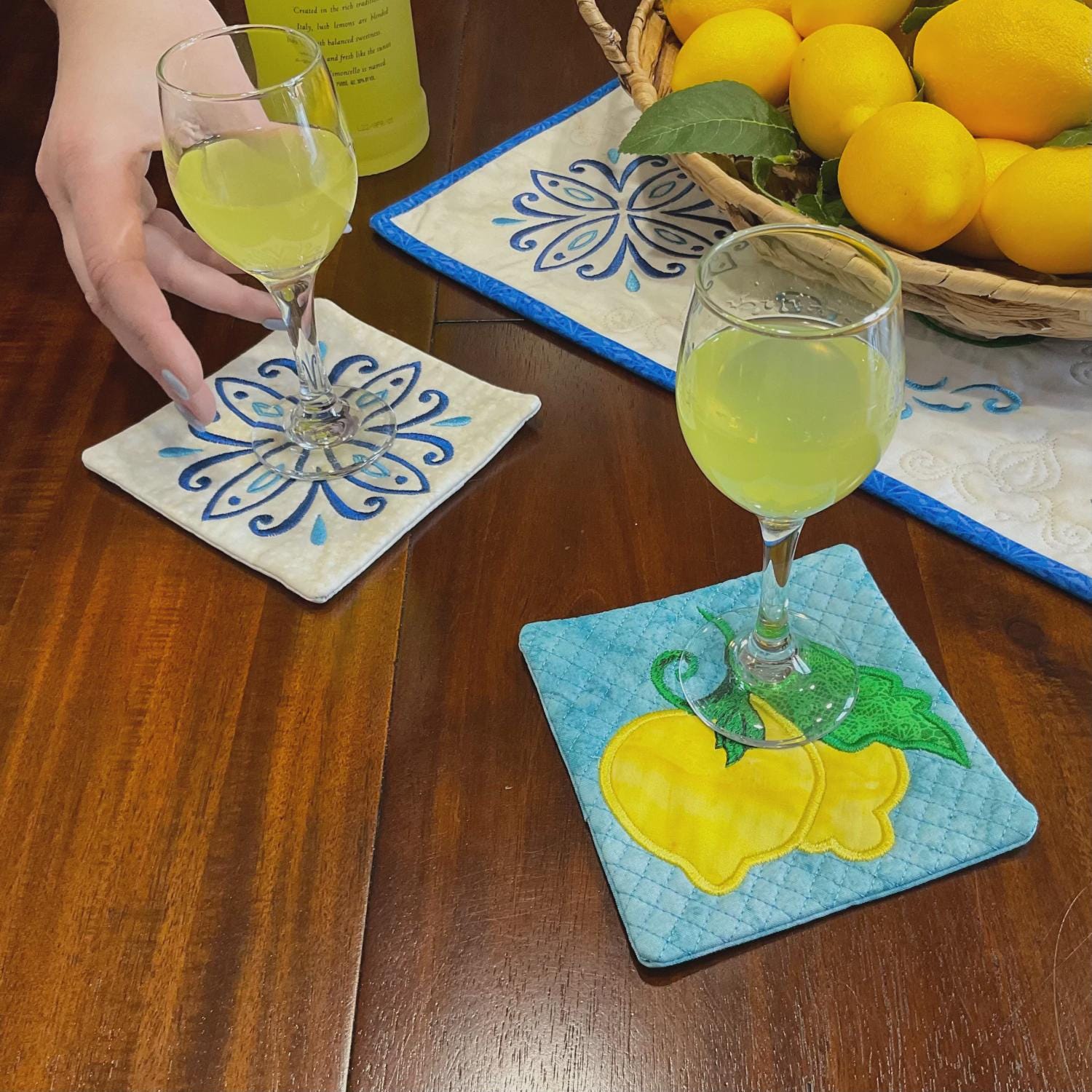 • Requires a 6” x 6” stitch field Lemon Coaster an “in the hoop” project