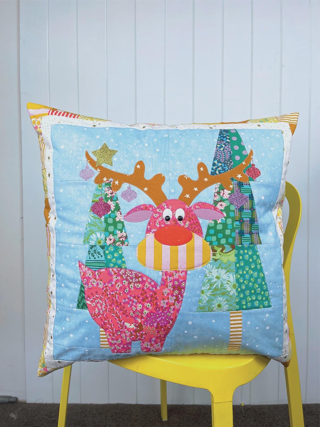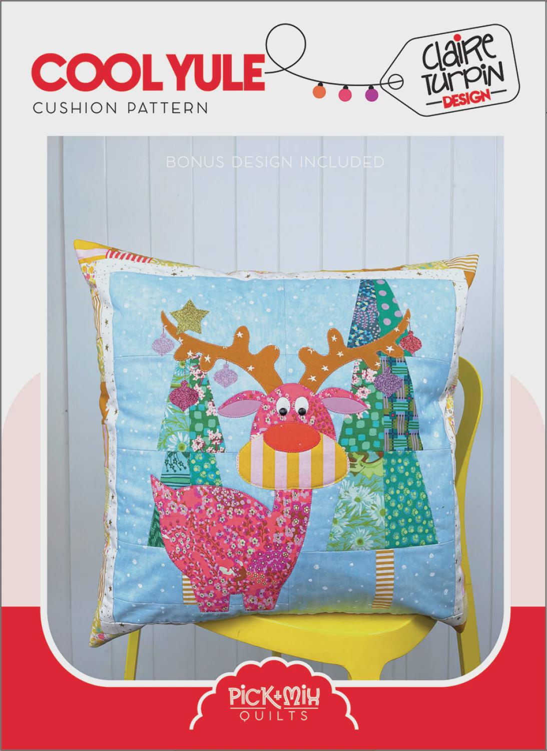 Pattern includes detailed full colour instructions and full-size templates for an 18" cushion.