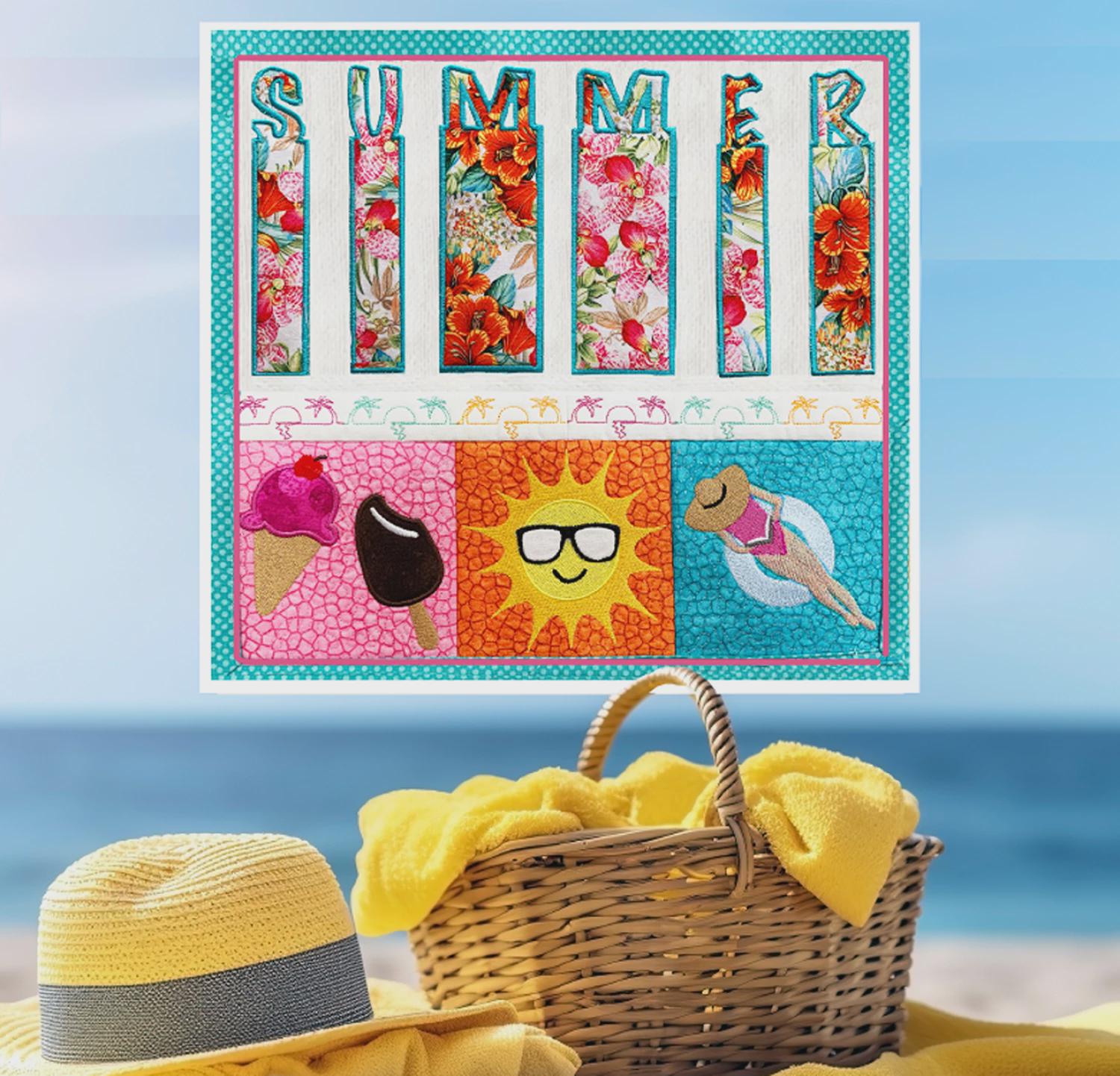 Summer Vibes Mini Quilt - USB- Machine Embroidery-From Laurie Kent Designs
