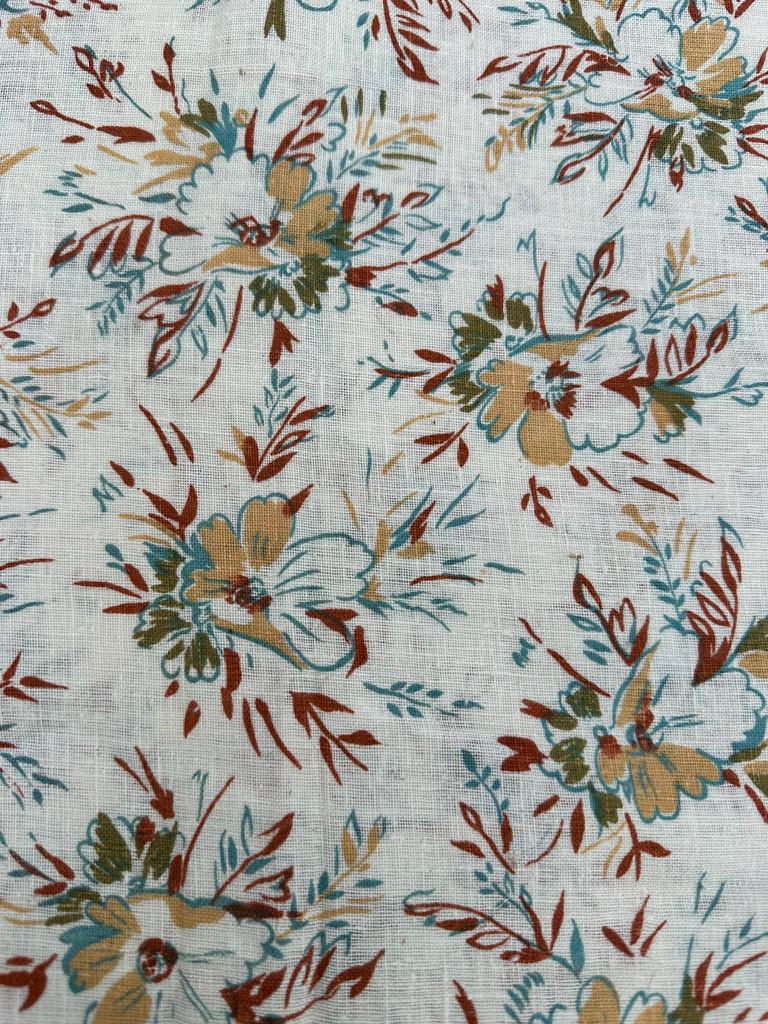 Linen Blend - Vintage 1970s - Floral- by the half yard