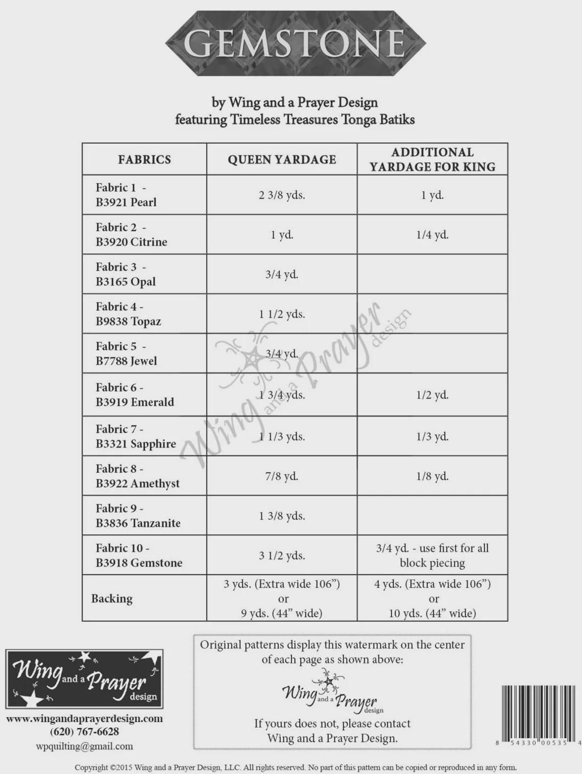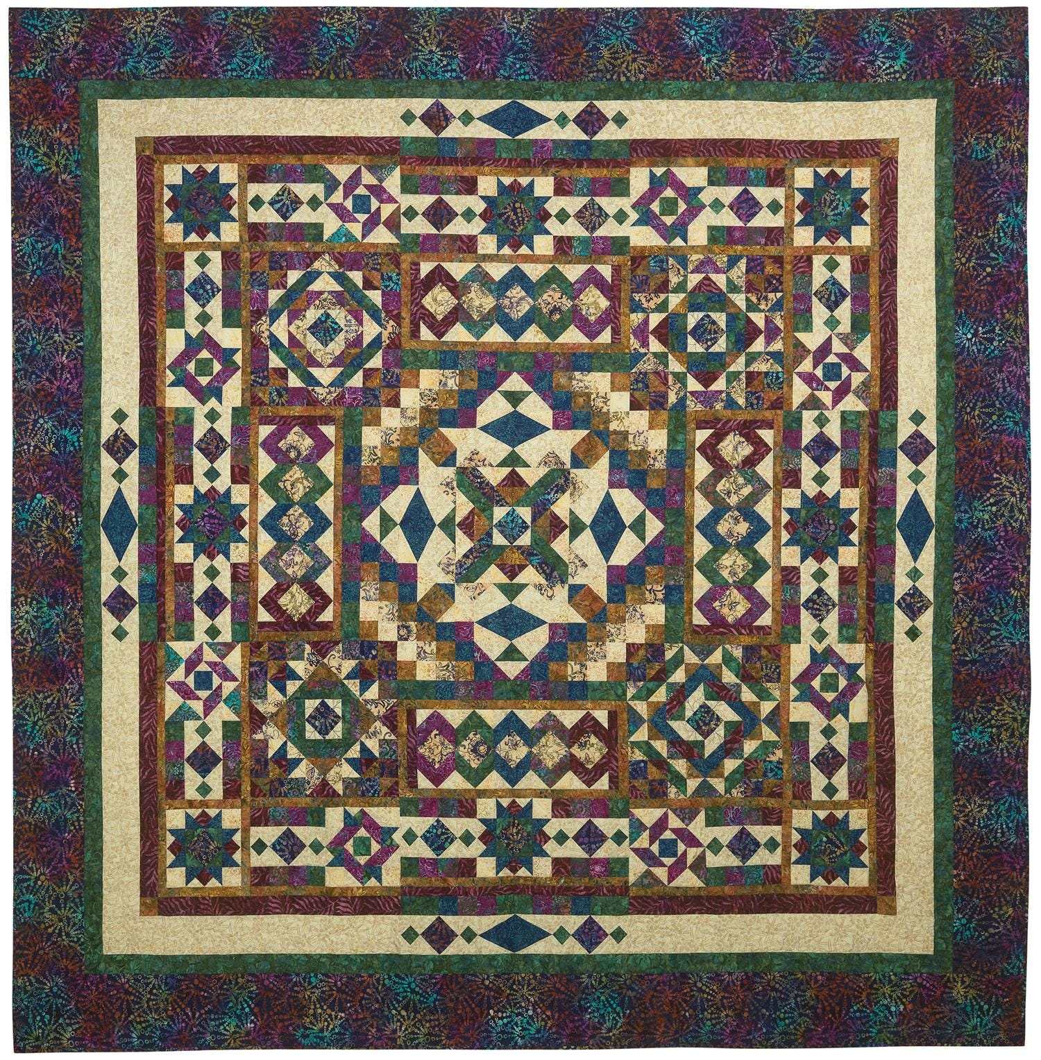 The unconventional block-of-the-month layout uses basic piecing techniques and a variety of block sizes from 8in to 16in to create the stunning Gemstone quilt. Finished Size: Queen: 92in x 108in, King: 108in square