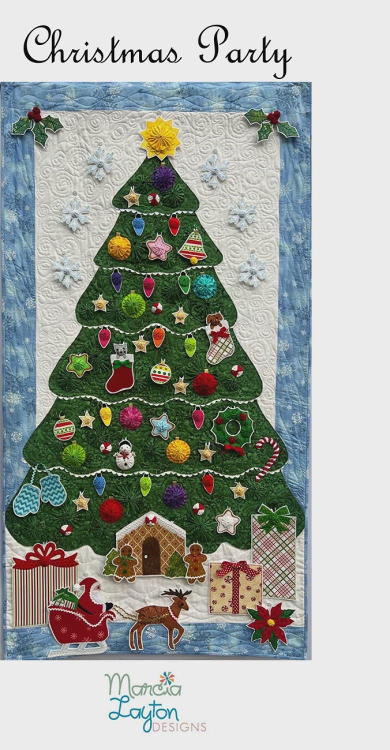 This whimsical door-sized Christmas tree quilt is created with fusible machine applique.