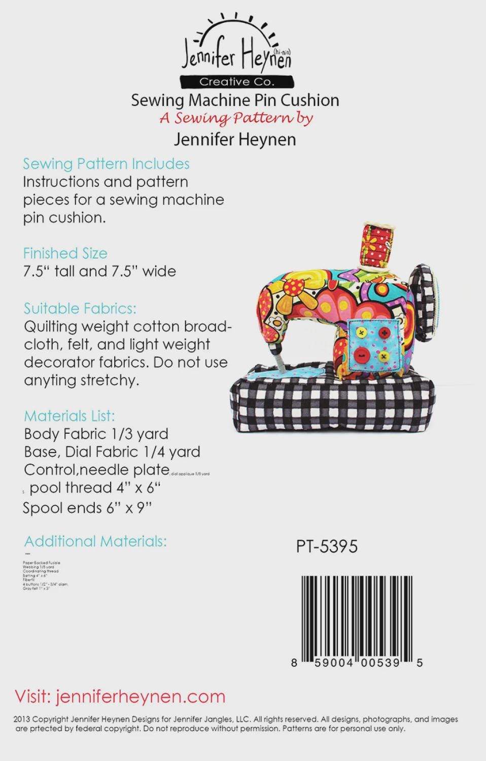 Sewing Machine Pincushion Sewing- Sewing Pattern - From Jennifer Heynen Creative Co.