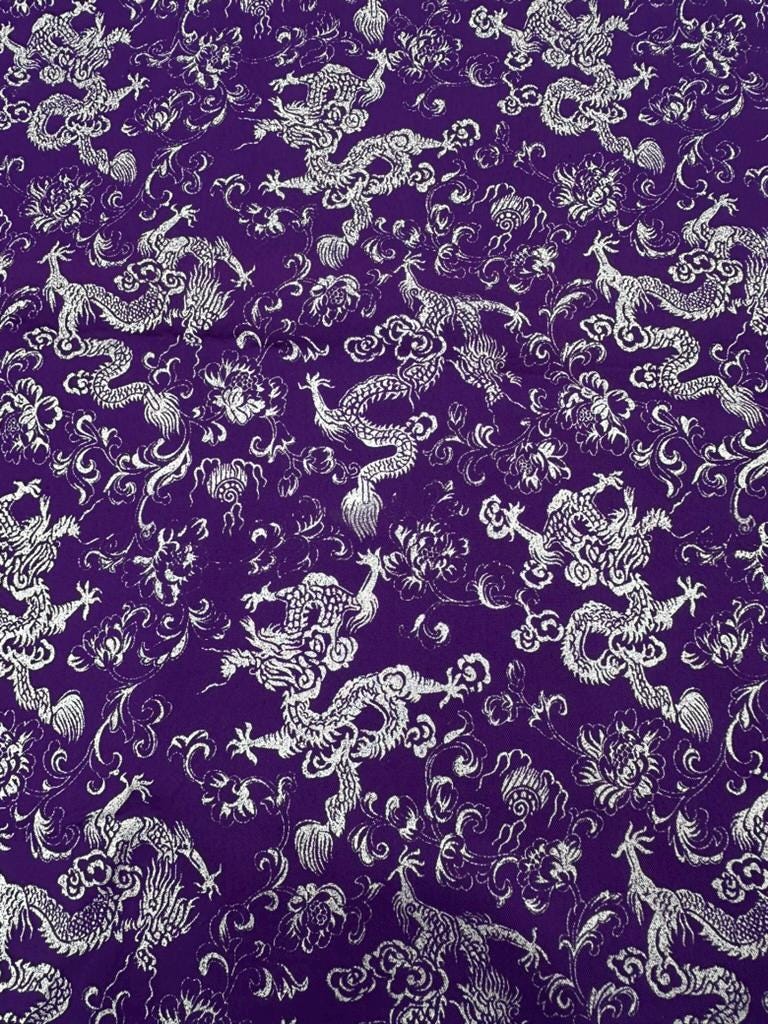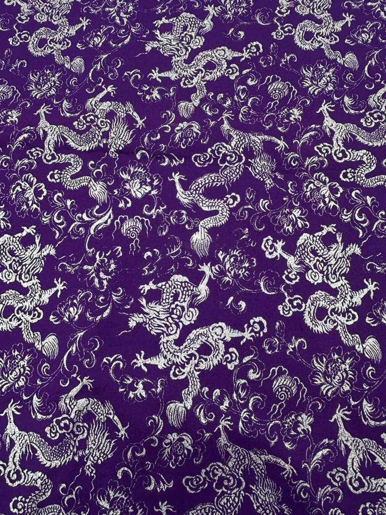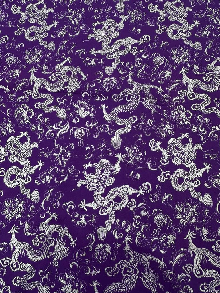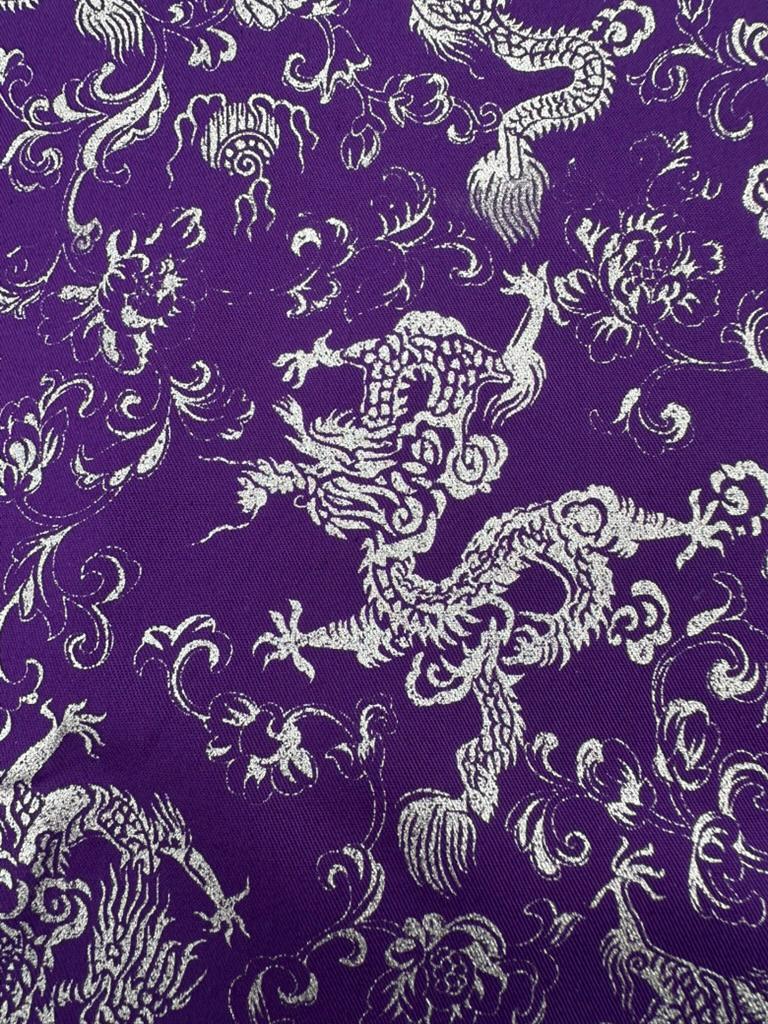 Purple Background with Silver Metallic Dragons and Floral motifs.