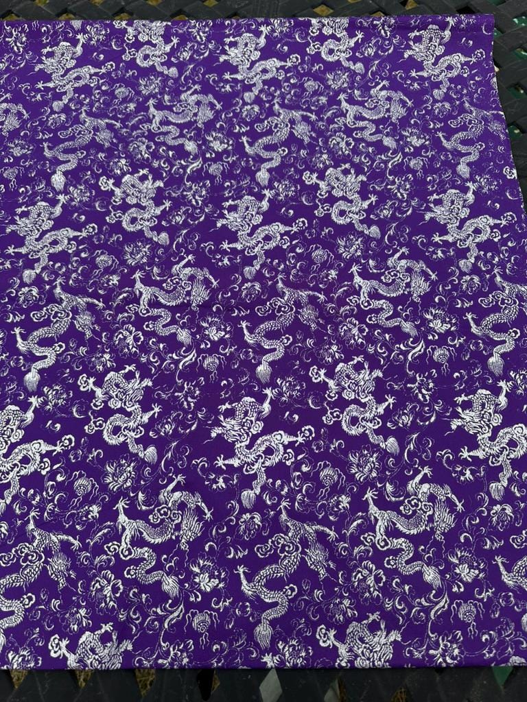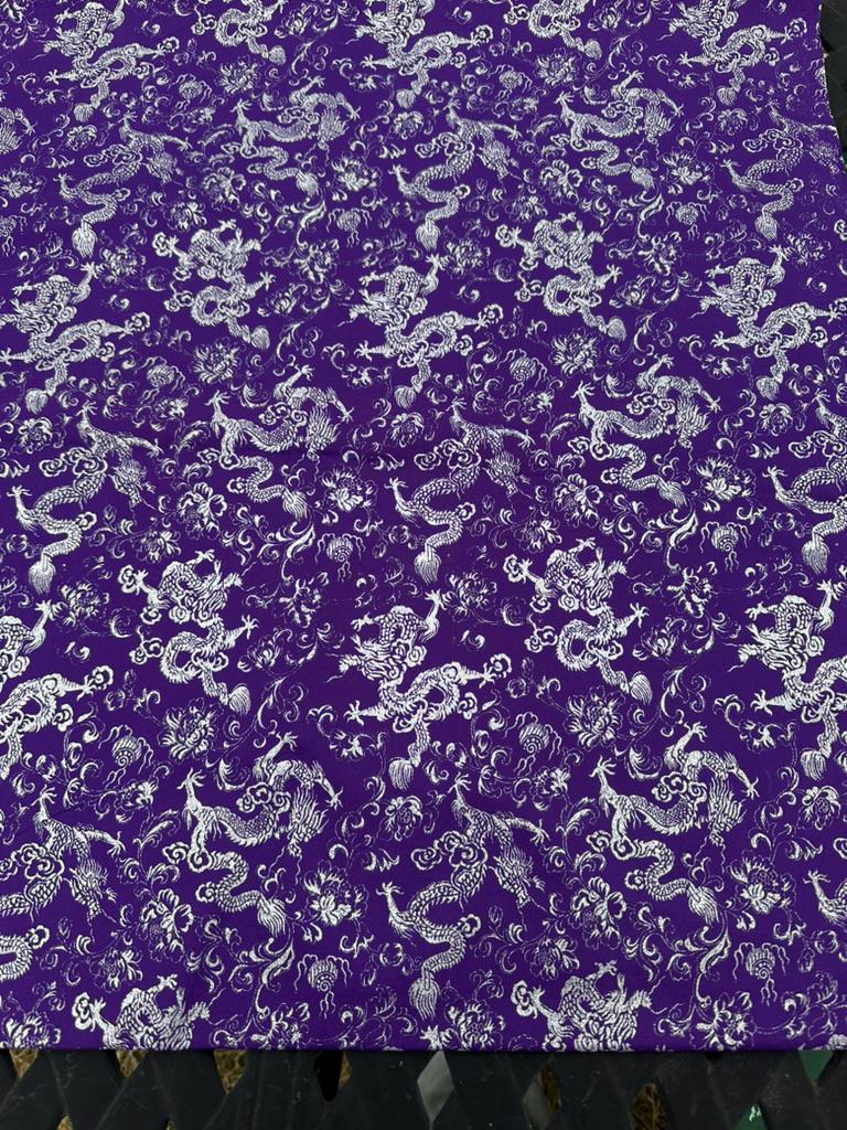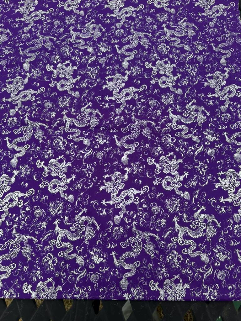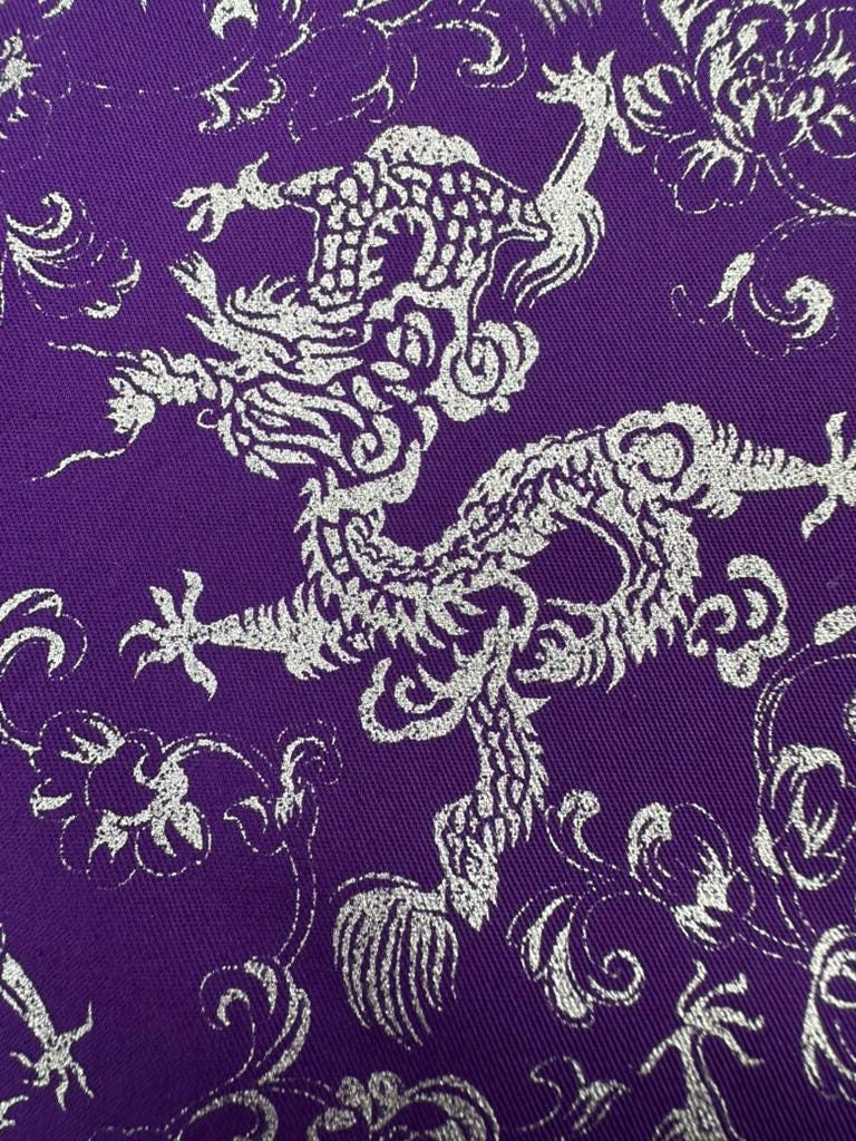 Purple Background with Silver Metallic Dragons and Floral motifs.