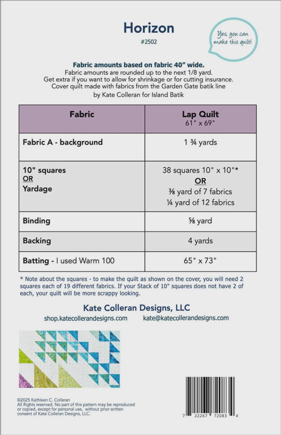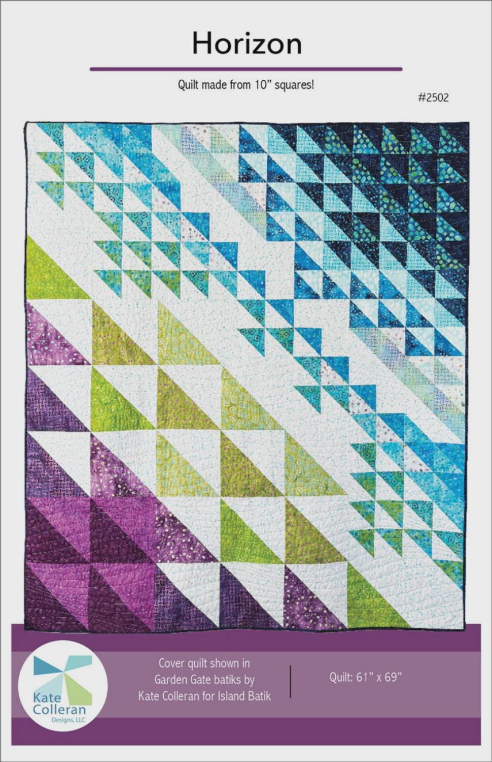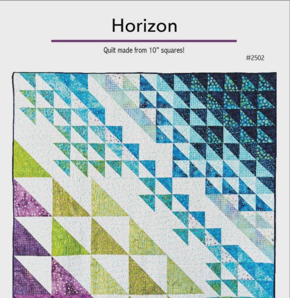 Horizon is a new triangle quilt pattern made for your faviorite 10" squares. Large triangles lead into smaller ones for a landscape look design out to the horizon.