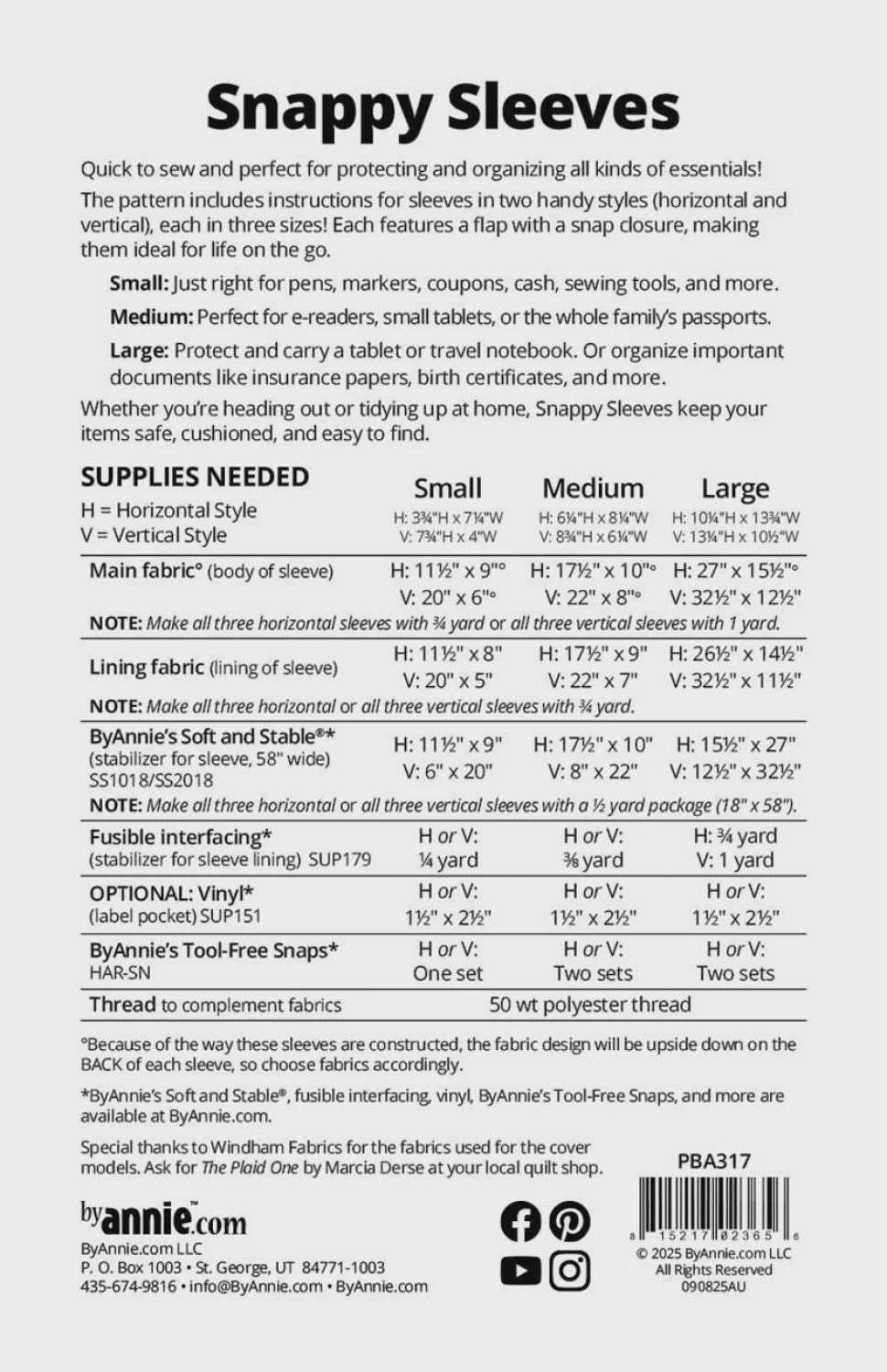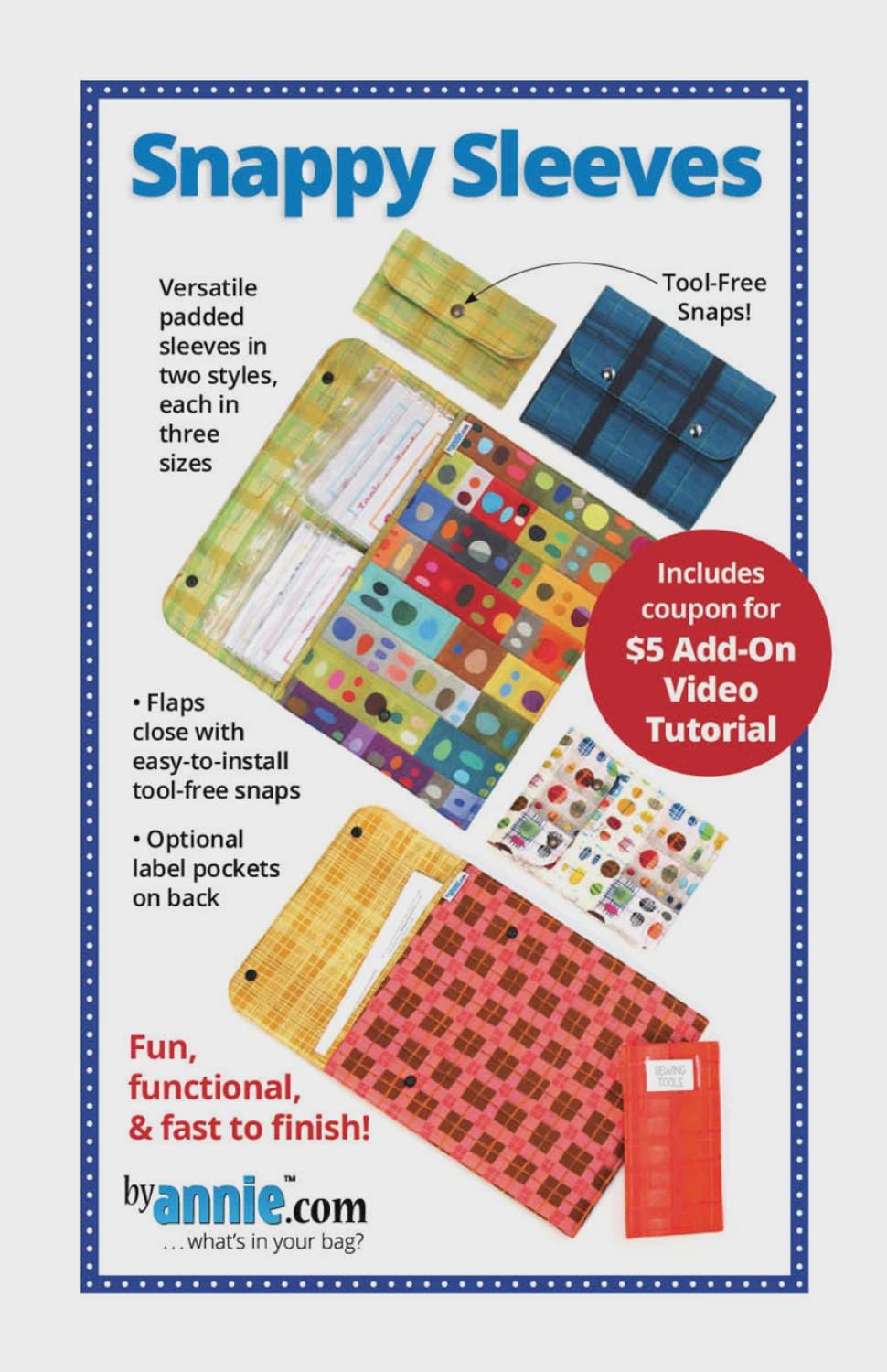 The pattern includes instructions for sleeves in two handy styles (horizontal and vertical), each in three sizes! Each features a flap with a snap closure, making them ideal for life on the go.